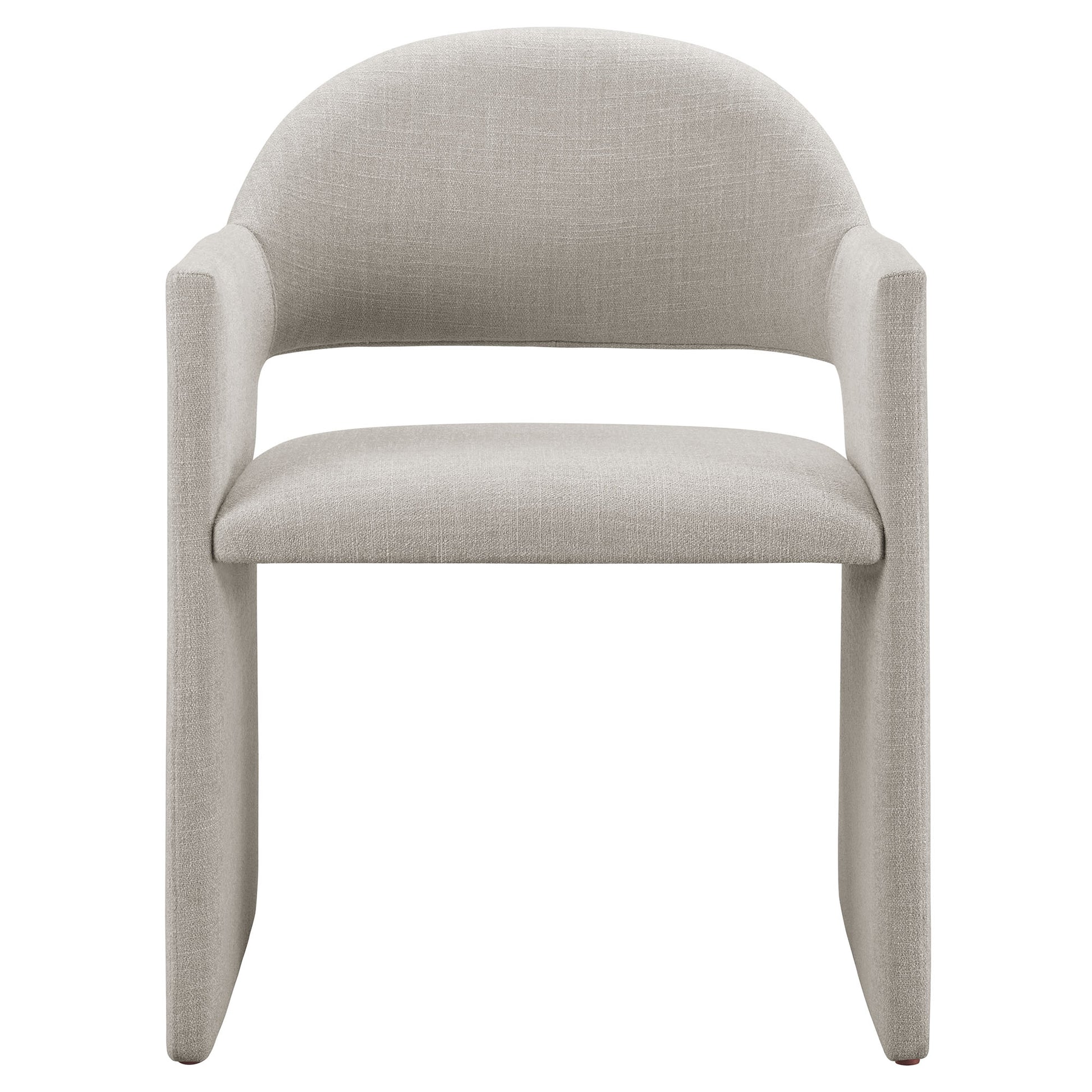 The Talia Upholstered Dining Chair is a stunning example of modern design, blending clean lines with luxurious comfort. Whether as a stylish living room accent chair, a statement piece in the dining area, or even a chic office accent chair, the Talia Barrel Back Dining Chair offers both timeless style and versatility. Built on a sturdy bentwood frame, this dining chair with arms is fully upholstered in soft slub weave fabric for a premium feel. Its elegantly curved backrest flows seamlessly into angular armrests that extend down to the floor, creating a sculptural look that's perfect for minimalist and contemporary spaces. The open-back design of this curved dining chair provides a light and airy feel, while the generously padded seat ensures lasting comfort. Completing the design, floor-protecting foot pins are included to prevent scratches, making it easy to move and enjoy without worry. The Talia Dining Armchair arrives fully assembled, ready to elevate your space. Weight Capacity: 300 lbs.