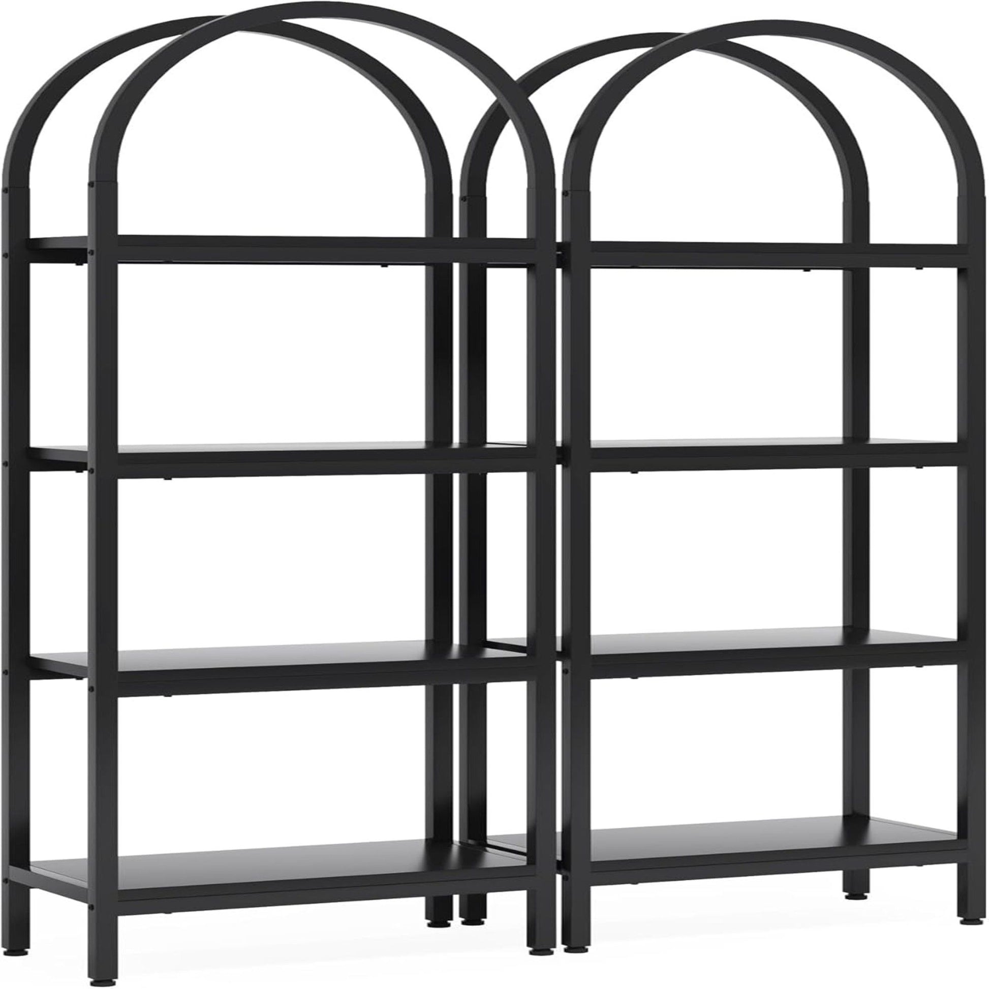 Tall 4 Tier Arched Open Bookshelf Storage Rack - Black