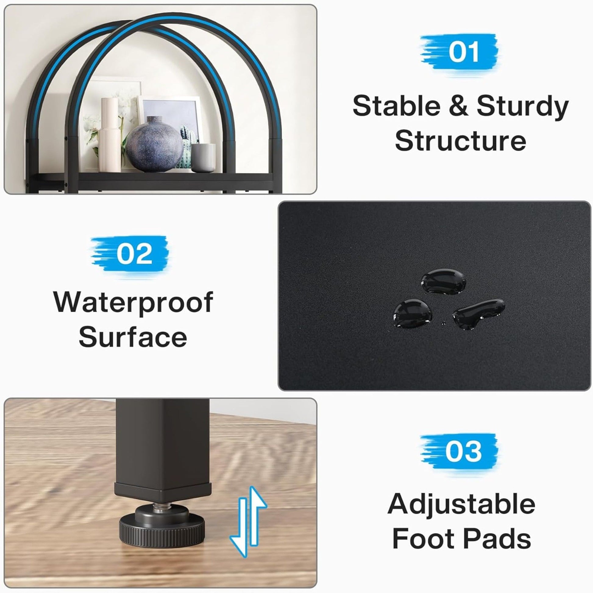 - Industrial Chic Design: Curved top with wood grain texture and black metal frame delivers a modern industrial aesthetic.