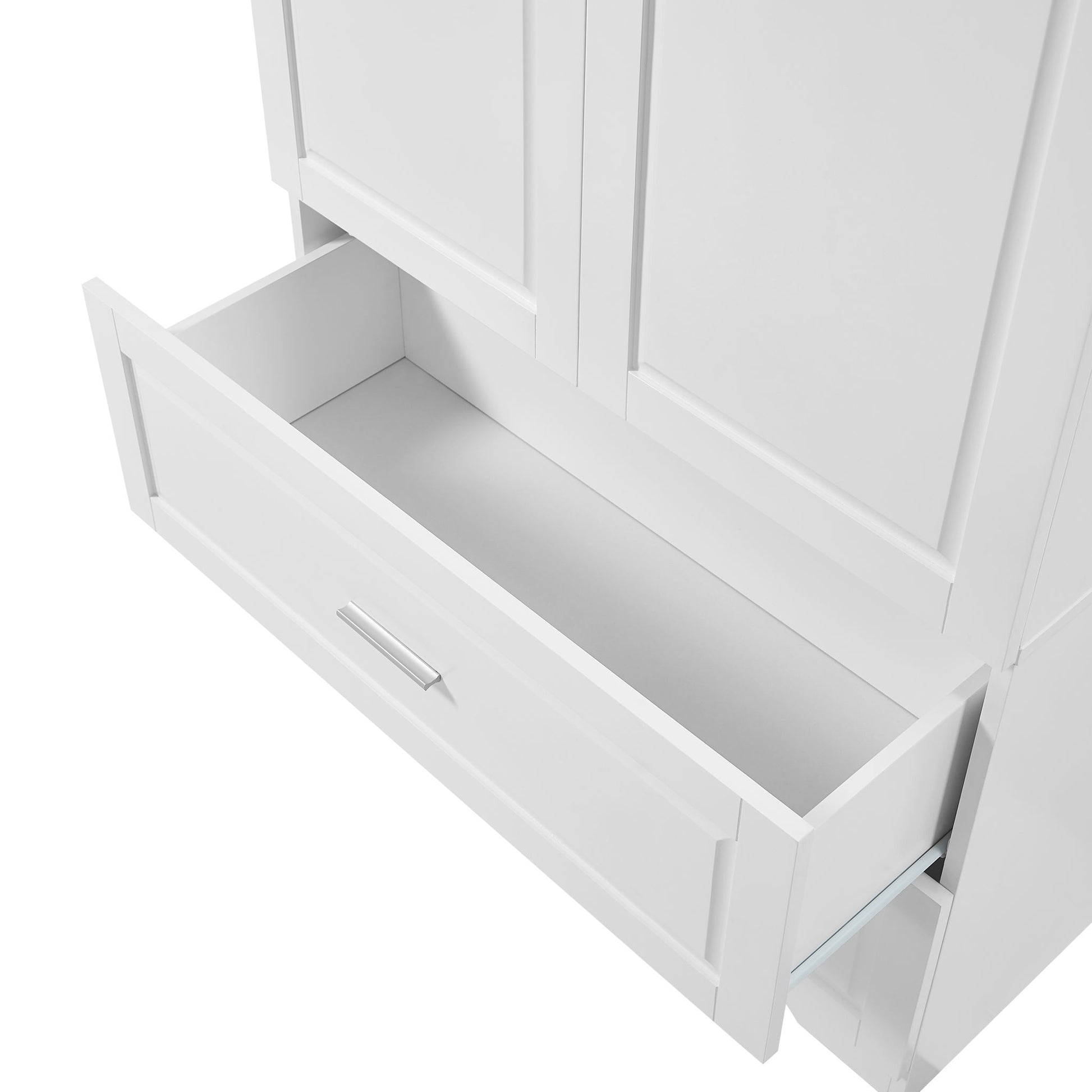 High-Quality Material: Made of high-quality MDF boards with a painted finish, this cabinet features a water-proof and easy-to-clean surface. Metal components like the door handle, hinge, and drawer slide add durability.
