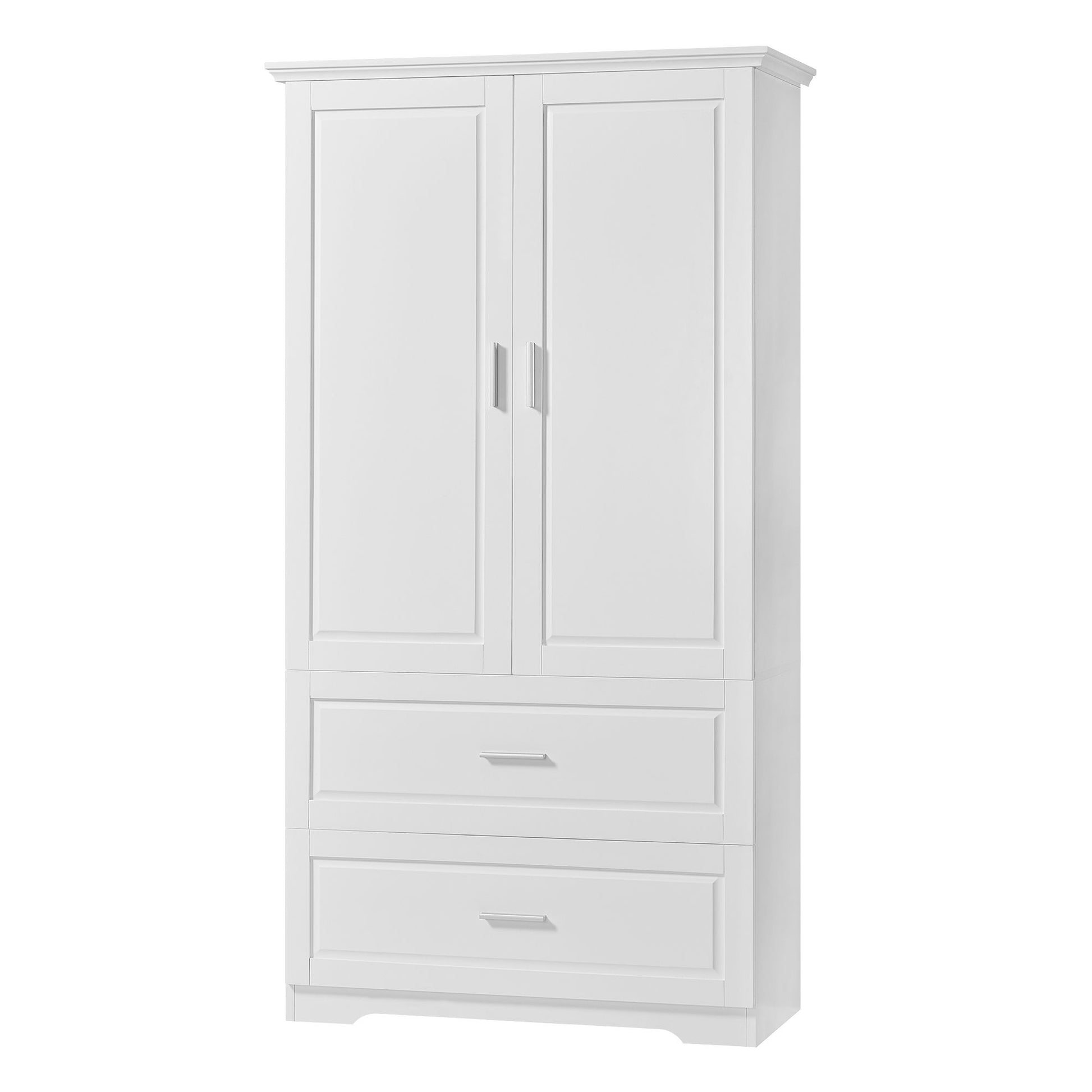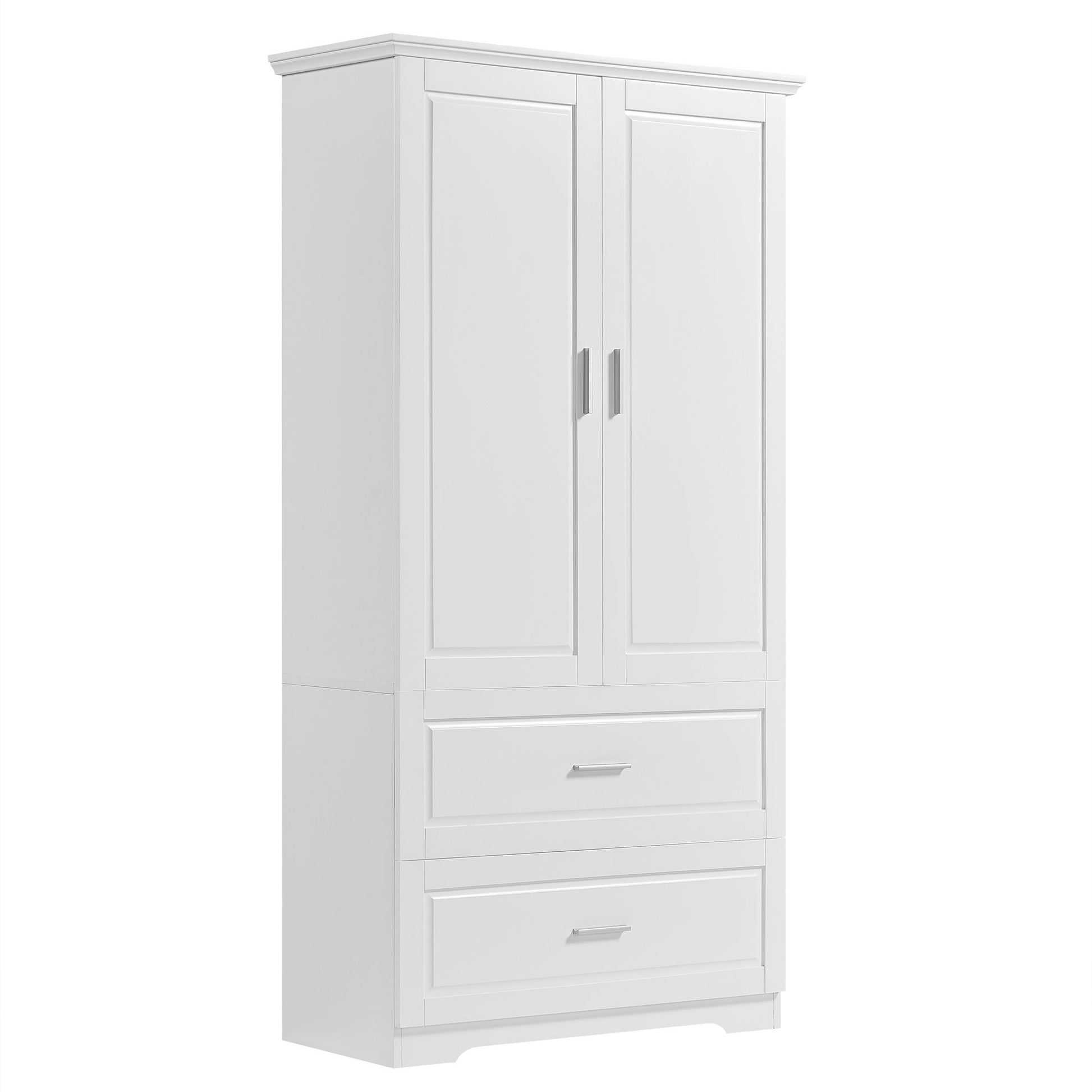 Tall Bathroom Storage Cabinet, With Two Doors And Drawers, Adjustable Shelf, MDF Board - White