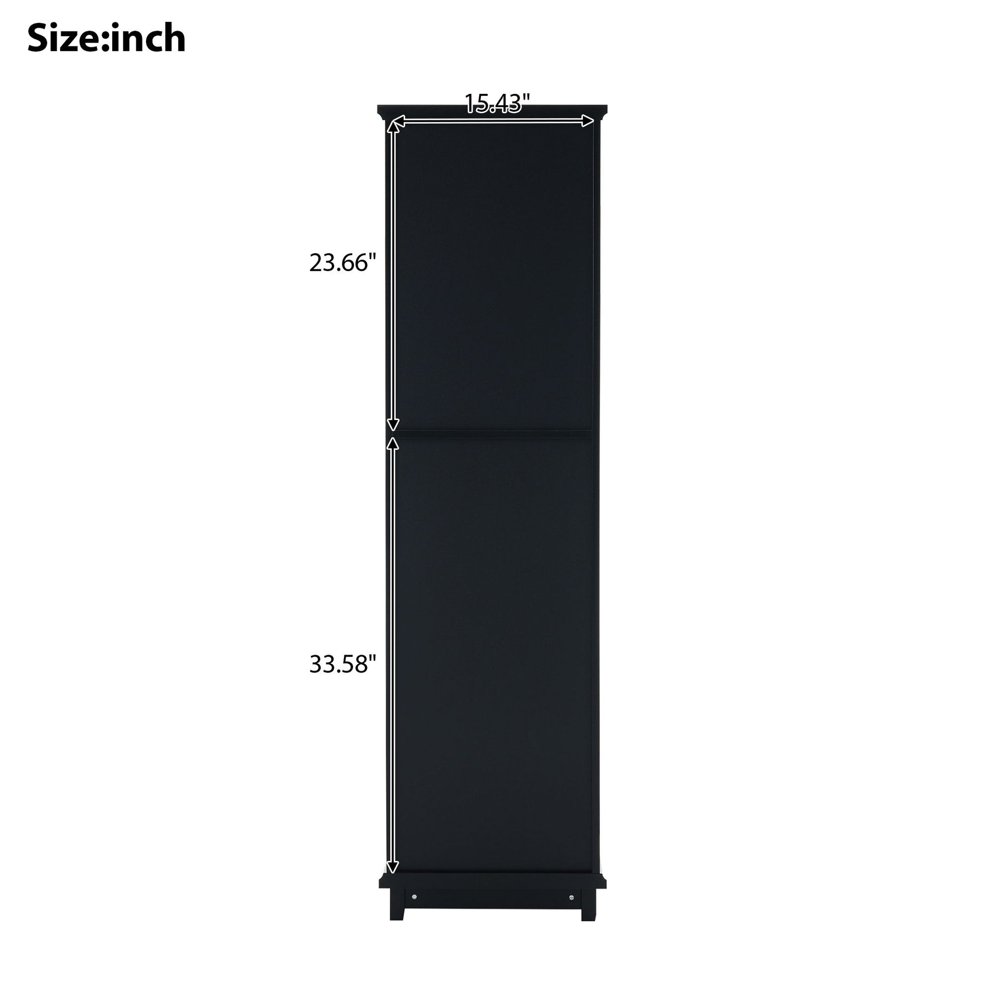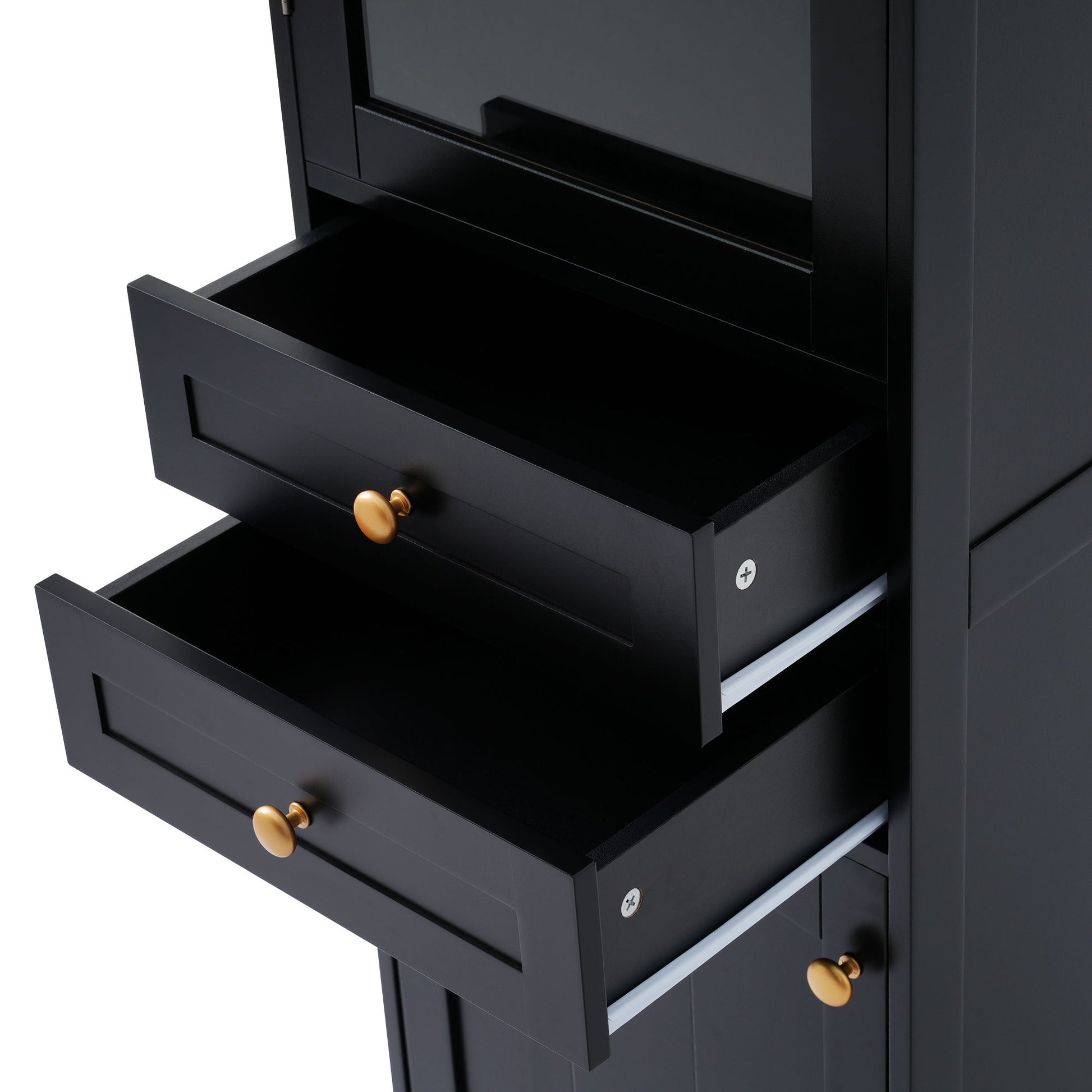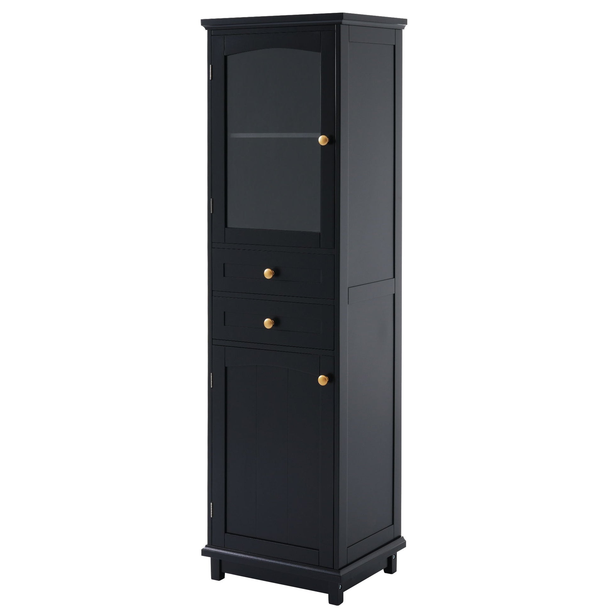 Tall Bathroom Storage Cabinet With Glass Doors, Free-Standing, Two Drawers, And Adjustable Shelves, MDF Board, Painted Perfect For Displaying Your Favorite Items - Black