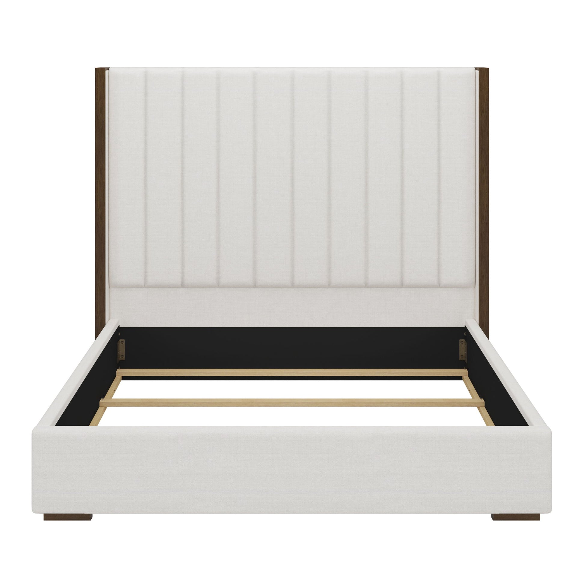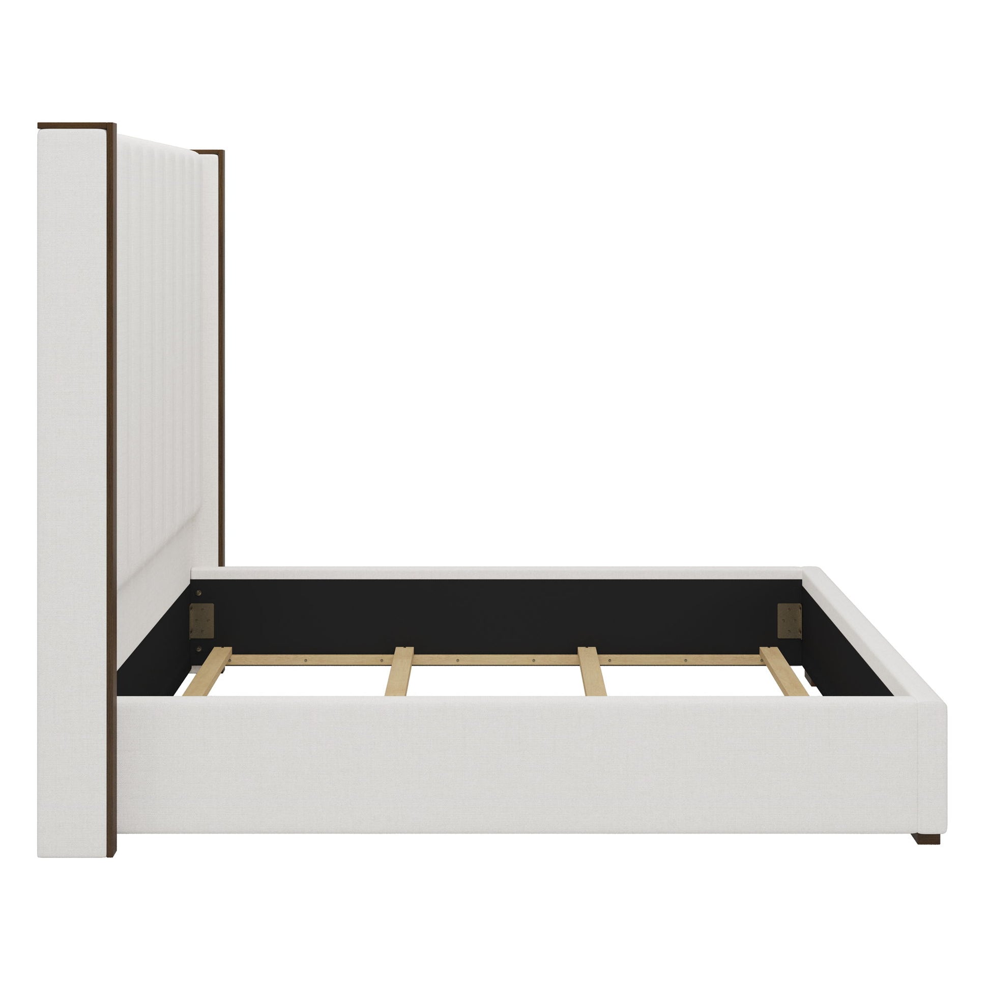 Tall Headboard Upholstered King Size Bed With Vertical Striped And Wingback Design, Box Spring Needed, Linen - Beige