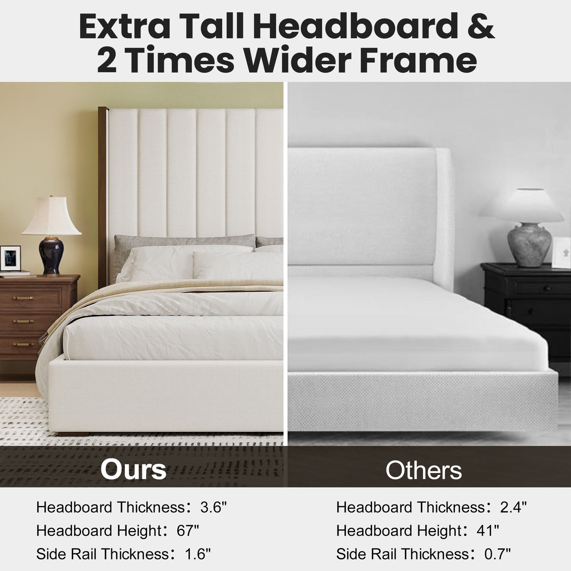 - Imposing Tall Headboard: The bed features a striking headboard standing at 67.5 inches tall, providing excellent support for sitting up in bed while serving as a captivating focal point that enhances your bedroom decor.