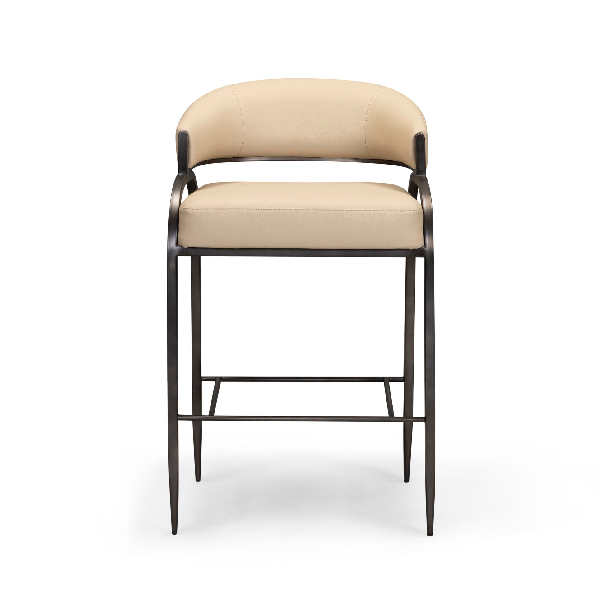 Transform your kitchen with the stunning Tatum Counter Stool, offered in several fabric options. Featuring an antique bronze iron finished metal frame, this art deco-inspired stool combines artsy flair with modern usability, offering excellent comfort and a polished look that complements any trendy home. The highly textured, liquid-repellent fabric and easy-to-clean vegan leather make it as practical as it is stylish.