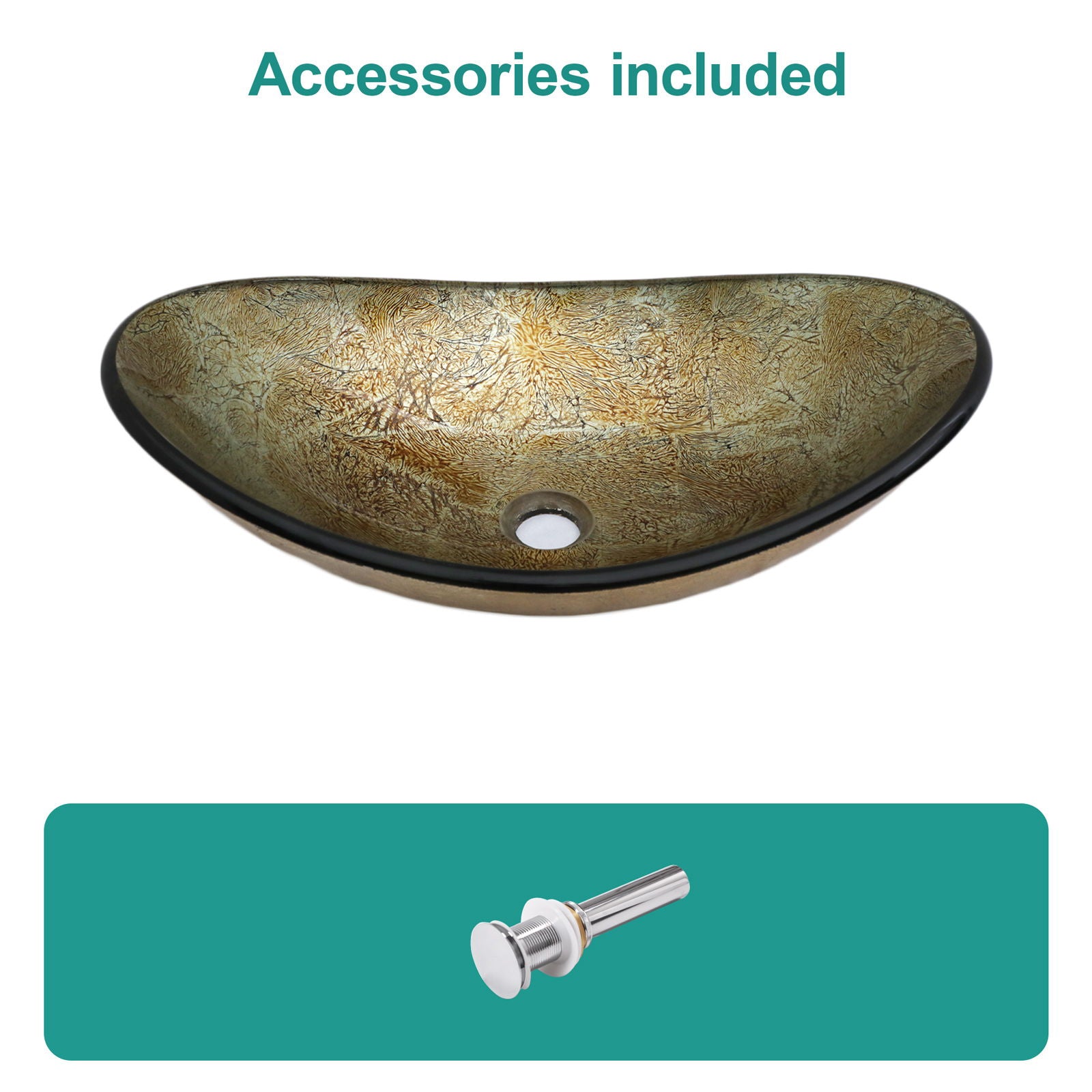 Vessel Sink With Chrome Pop Up Drain, Boat Shape Bathroom Sink Above Counter - Gold