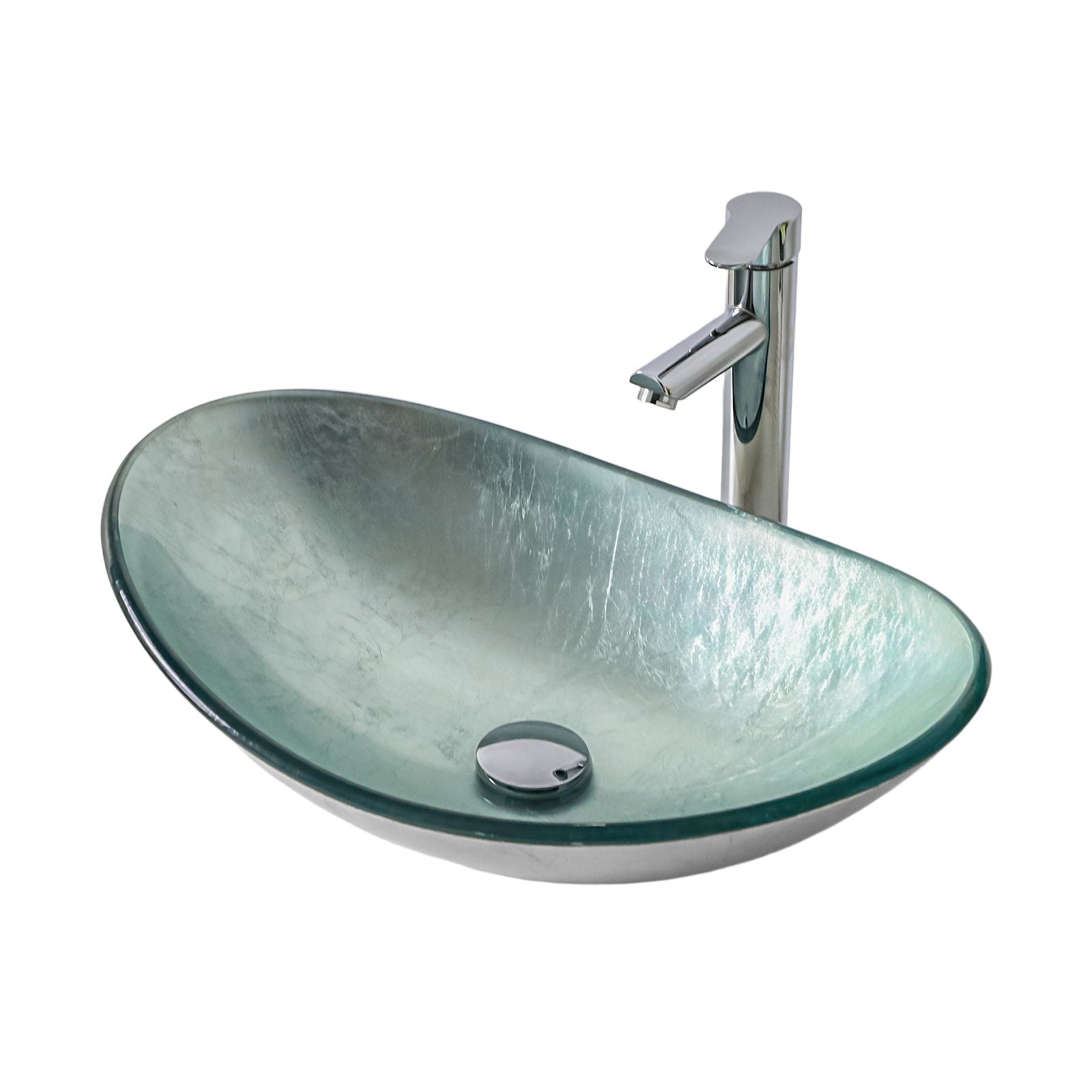 Tempered Glass Vessel Sink With Boat Shape Pop-Up Drain