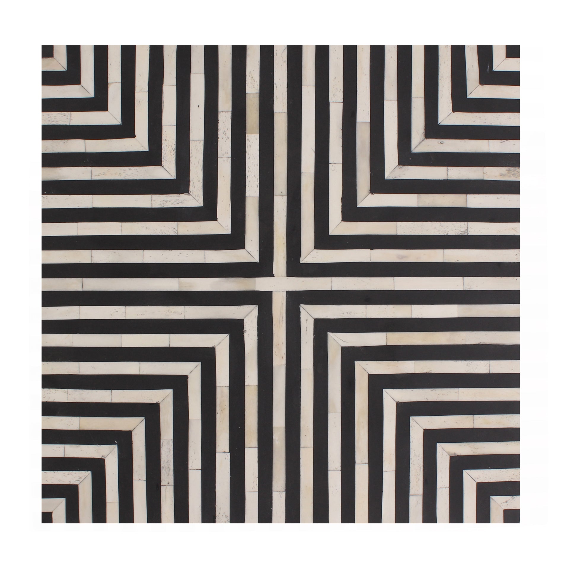Simplistic and bold, the Terning side table’s hypnotic art deco design is an exercise in contrast. A veneer of ethically sourced white and black camel bone with resin adds a visual statement that contrasts with its simple construction and square shape. The Terning series features a coffee table and a side table to better suit living spaces of all sizes and shapes.