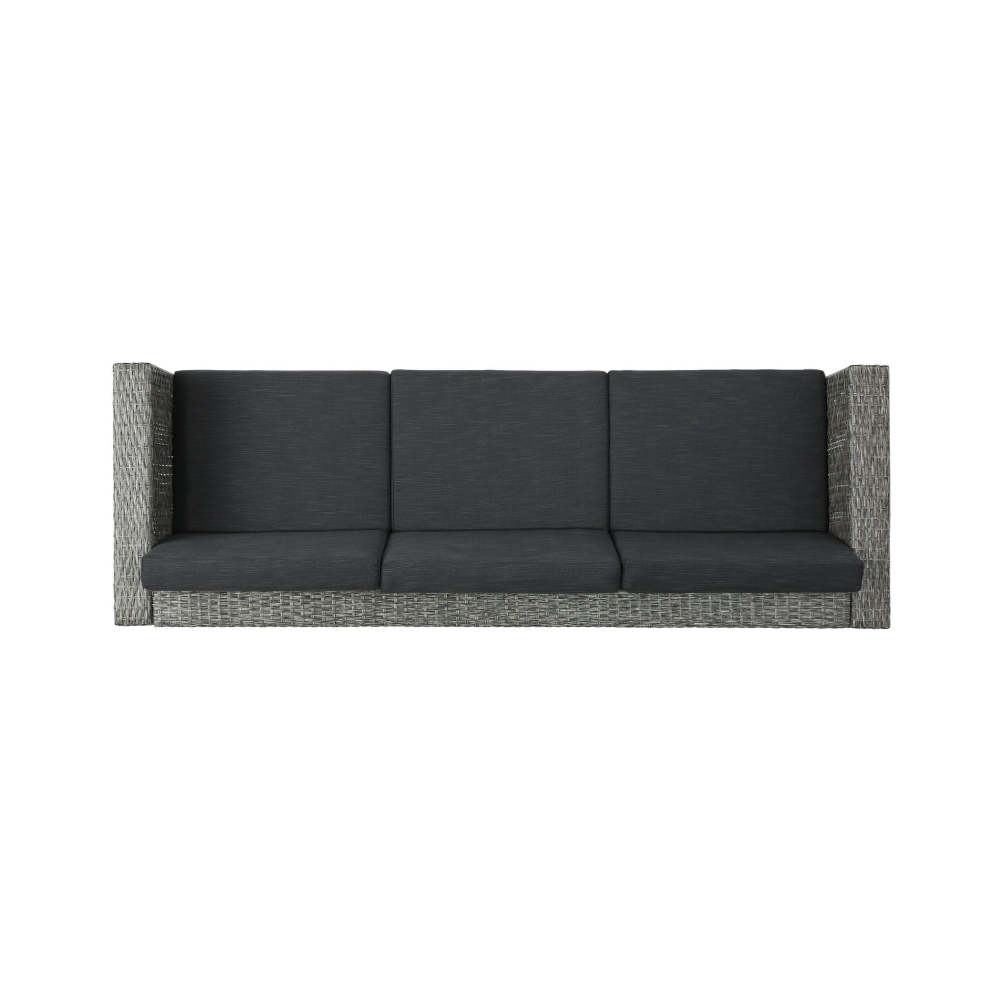 Thalassa - Outdoor 3 Seater Sofa With Removable Cushions And Steel Frame - Dark Gray / Black