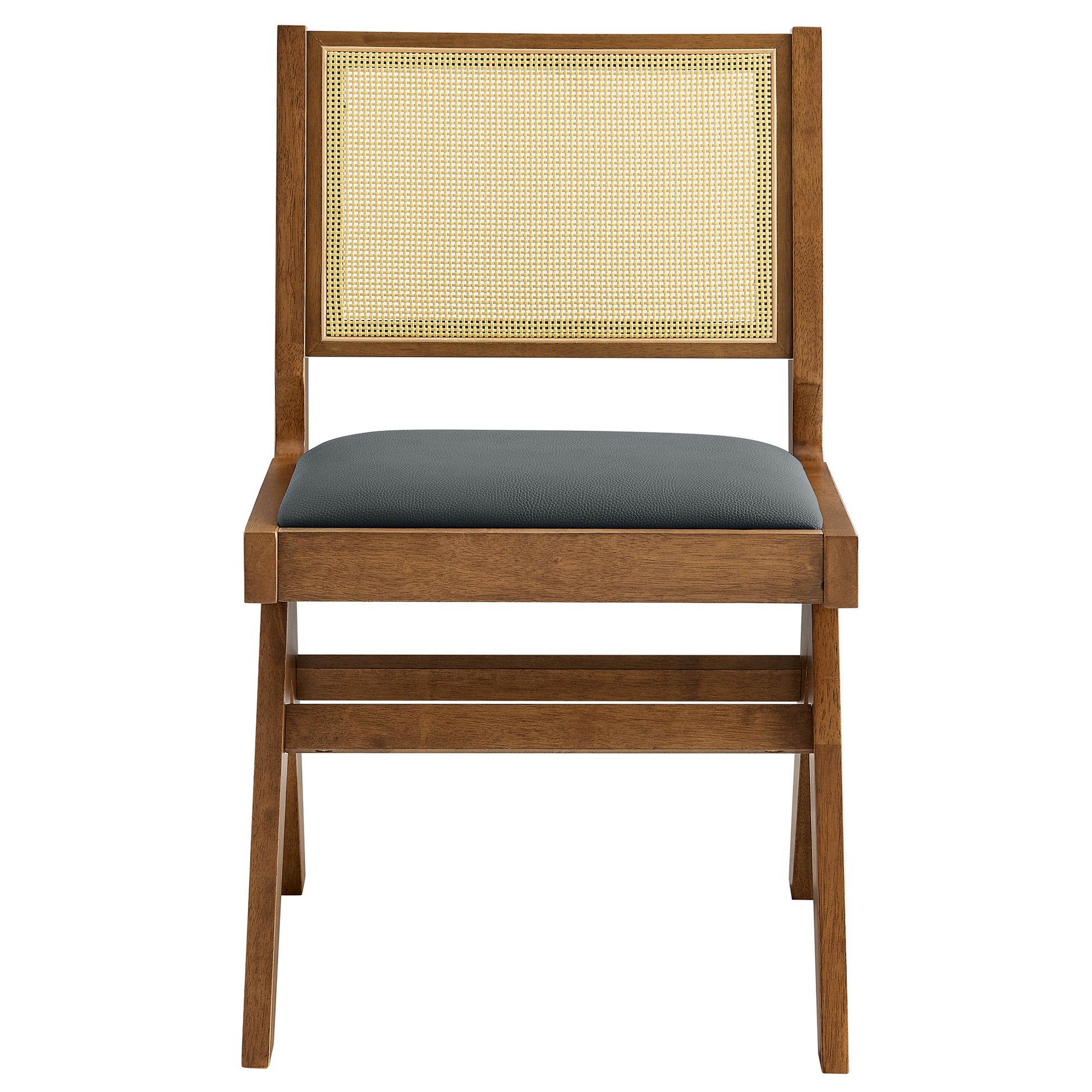 Thera Vegan Leather and Cane Dining Side Chairs Set of 2 by Modway