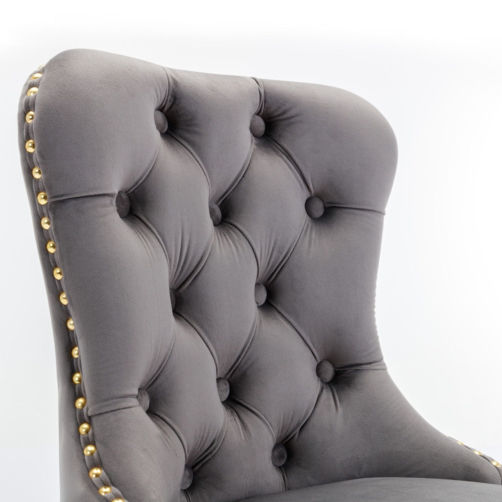 Thick Golden Swivel Velvet Barstools Adjusatble Seat Height From 25-33", Modern Upholstered Bar Stools With Backs Comfortable Tufted For Home Pub And Kitchen Island (Set of 2) - Gray