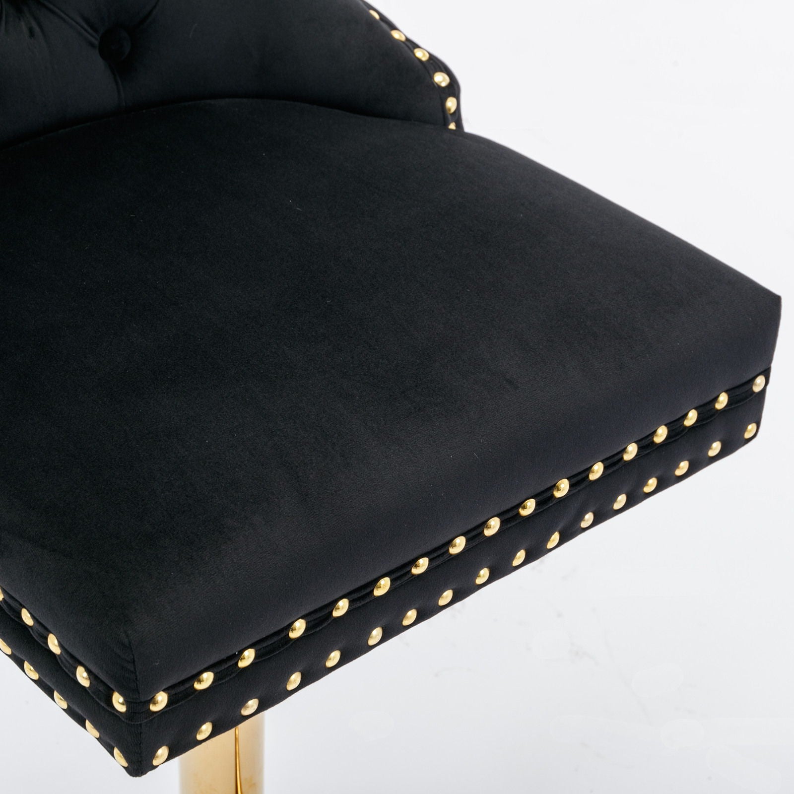 Thick Golden Swivel Velvet Barstools Adjusatble Seat Height From 27-35", Modern Upholstered Bar Stools With Backs Comfortable Tufted For Home Pub And Kitchen Island (Set of 2) - Black