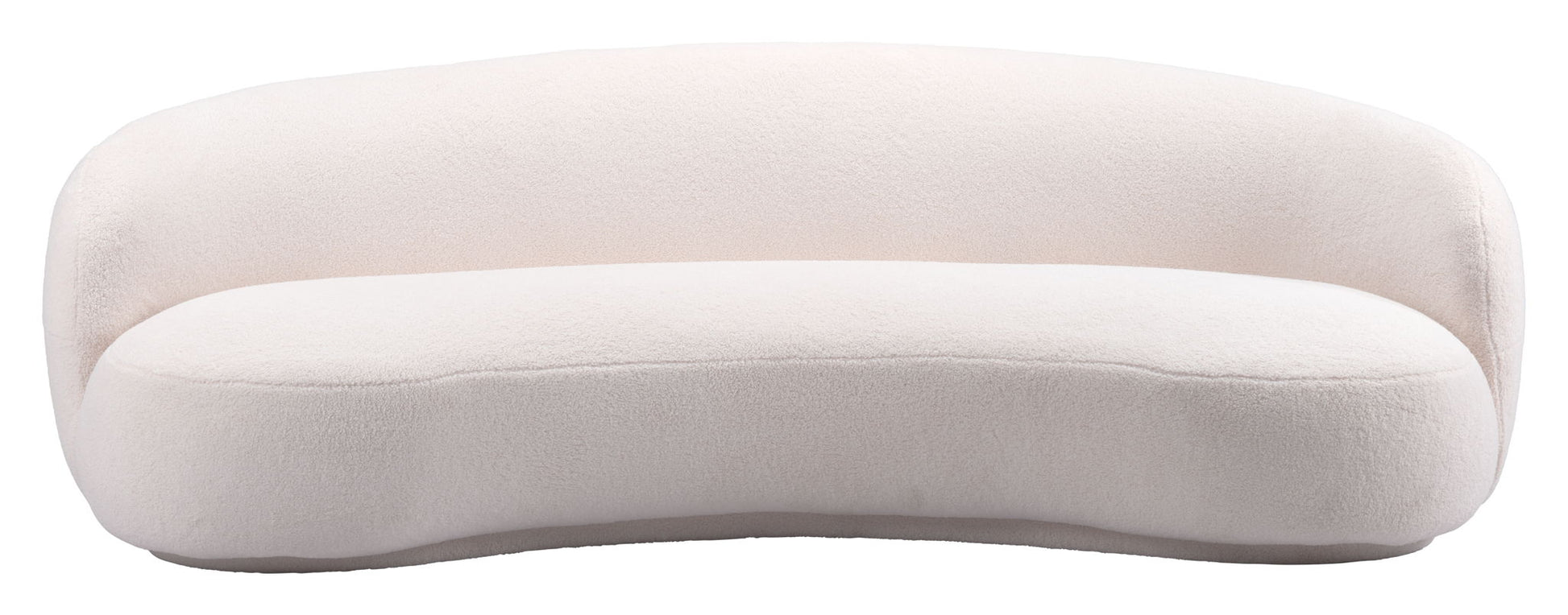 This sofa has a polyester boucle style fabric that works great in any space, hospitality or residential. The shape and design are glam, modern, deco, and boho all at the same time.