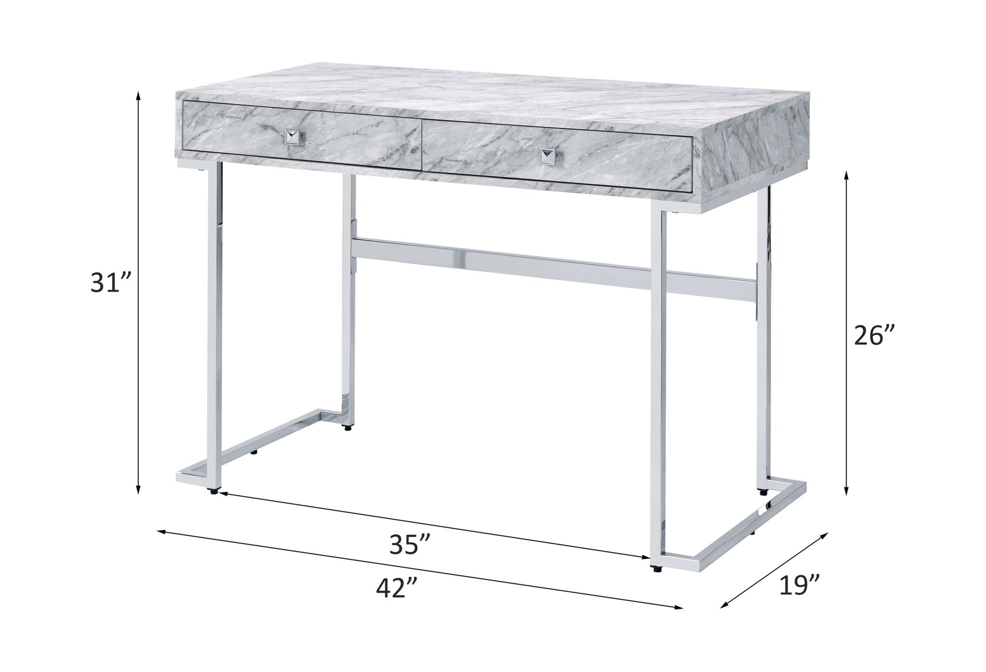 - Modern Elegance: This writing desk features a sleek white engineered stone top and a lustrous chrome finish, exuding modern elegance and sophistication in any workspace.
