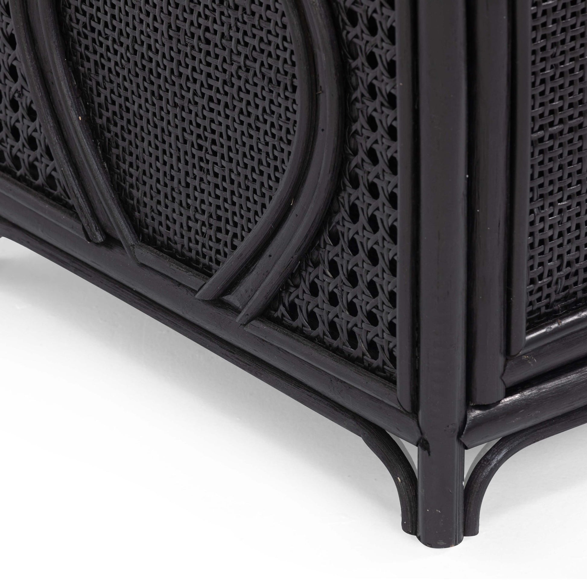 Introducing the Tina Rattan Nightstand, where the charm of natural raw rattan and cane combines to create the ultimate earthy, Boho vibe. This piece features mixed styles of cane and a rounded, arched shape that's utterly trendy and perfect for adding a touch of organic style to your bedroom. Beyond its beauty, it boasts a magnetic-catch door revealing two spacious shelves inside, ideal for organizing your nighttime routine essentials with ease.