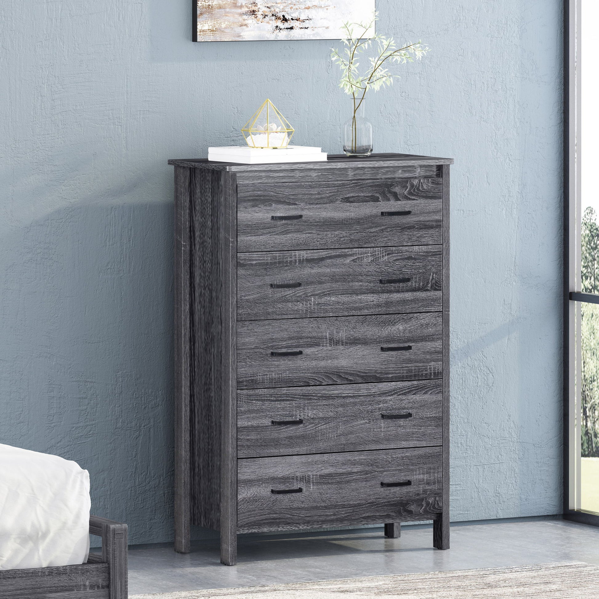 Titeca - Contemporary Wood 5 Drawer Dresser - Dark Gray
