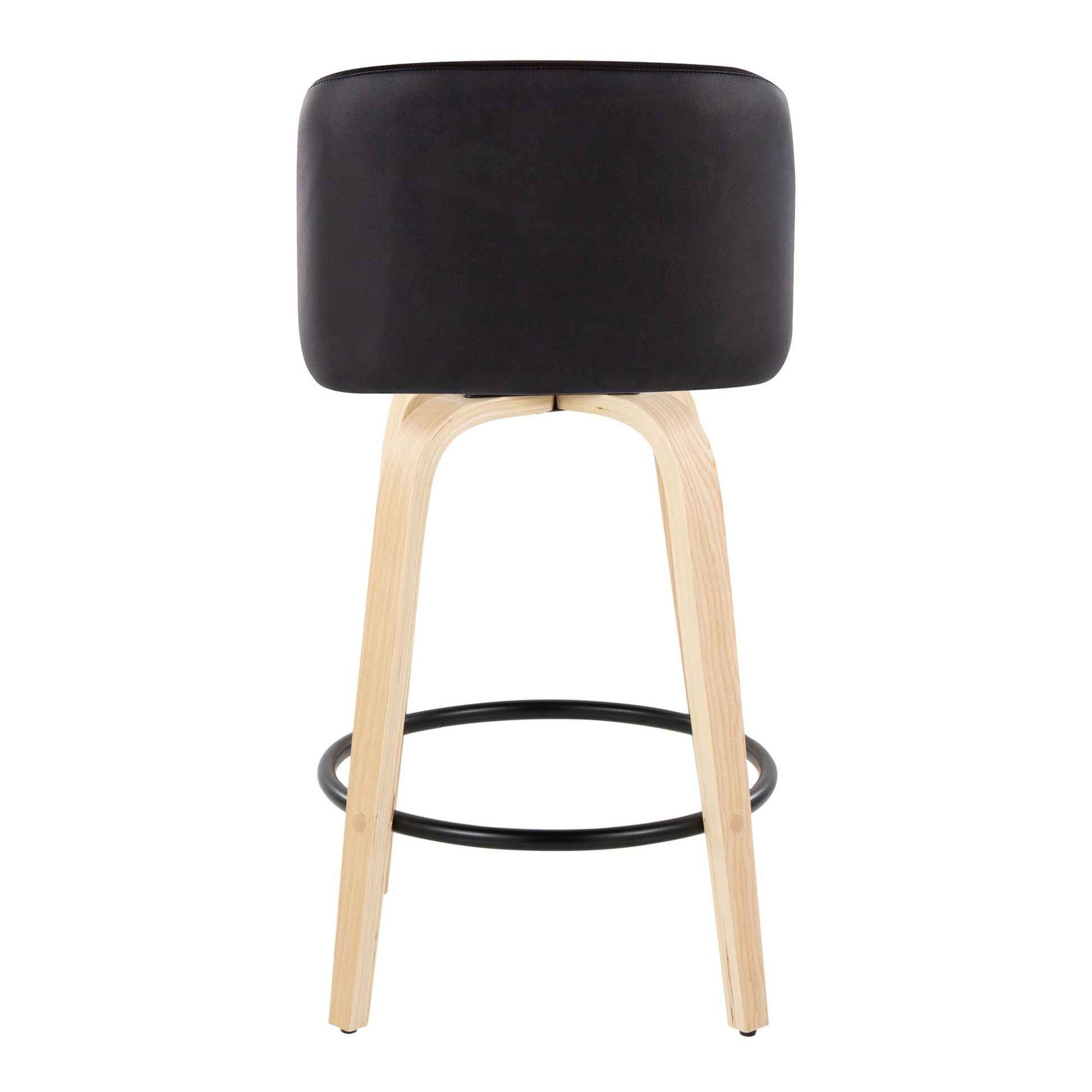 Toriano - Contemporary Modern Fixed Height Counter Stool With Swivel With Round Footrest (Set of 2) - Natural / Black