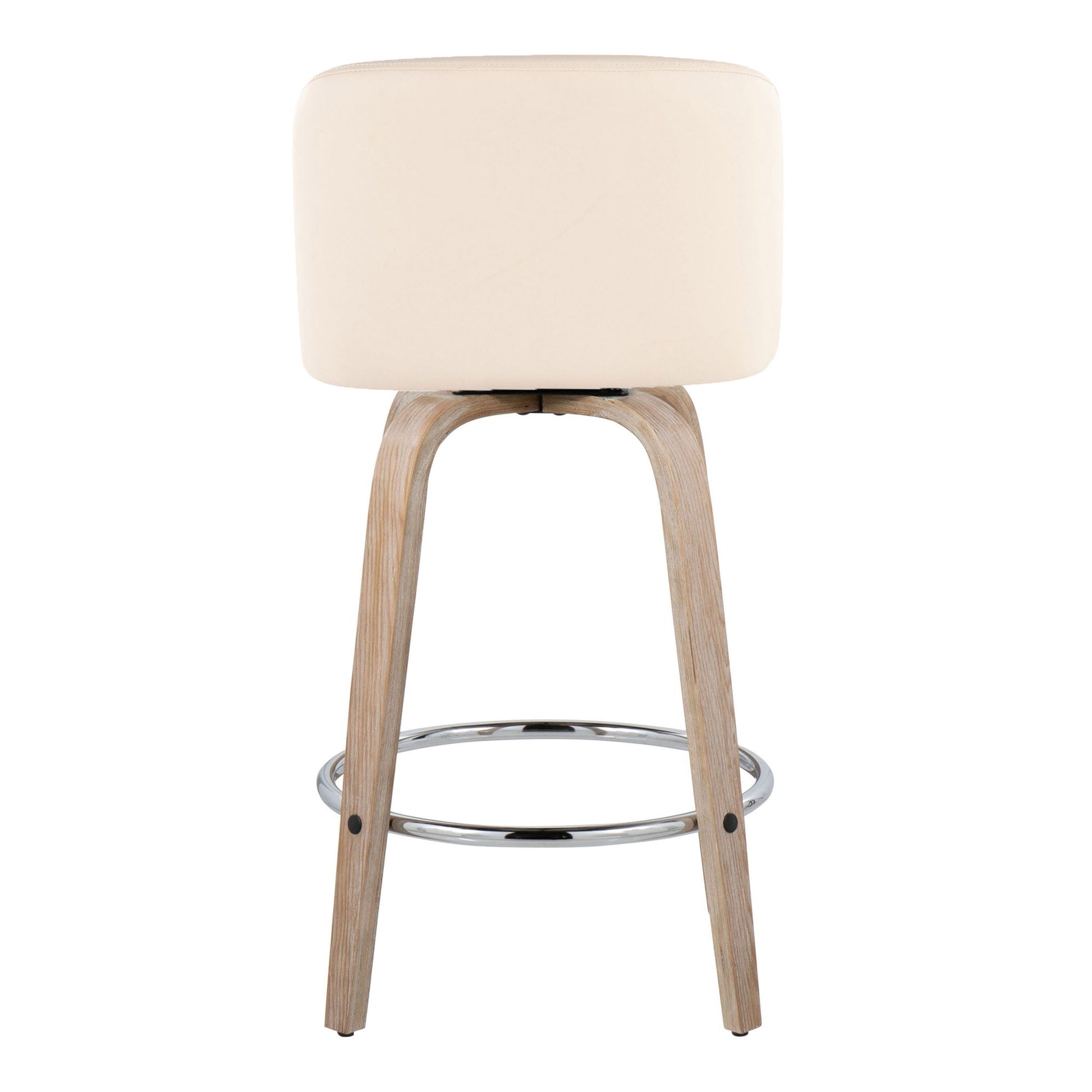 Toriano - Contemporary Fixed Height Counter Stool With Swivel With Round Footrest (Set of 2) - Whitewashed / Cream