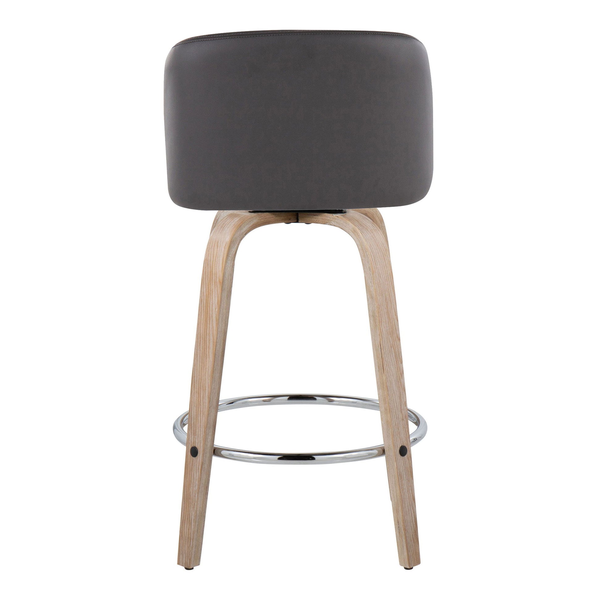 Toriano - Contemporary Fixed Height Counter Stool With Swivel With Round Footrest (Set of 2) - White Washed / Gray