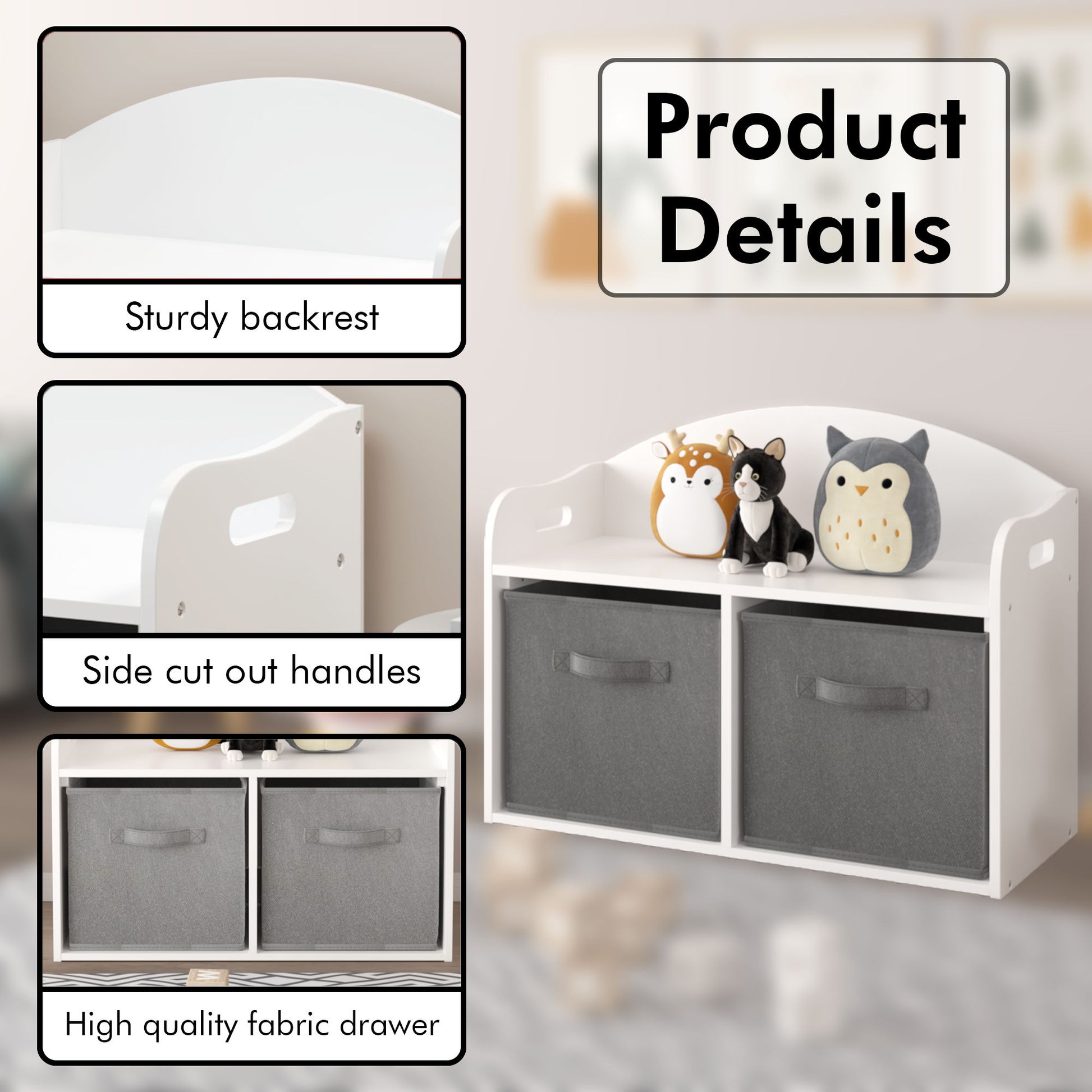 Toy Box Bench With Collapsible Drawers, Storage Cabinet Organizer - White