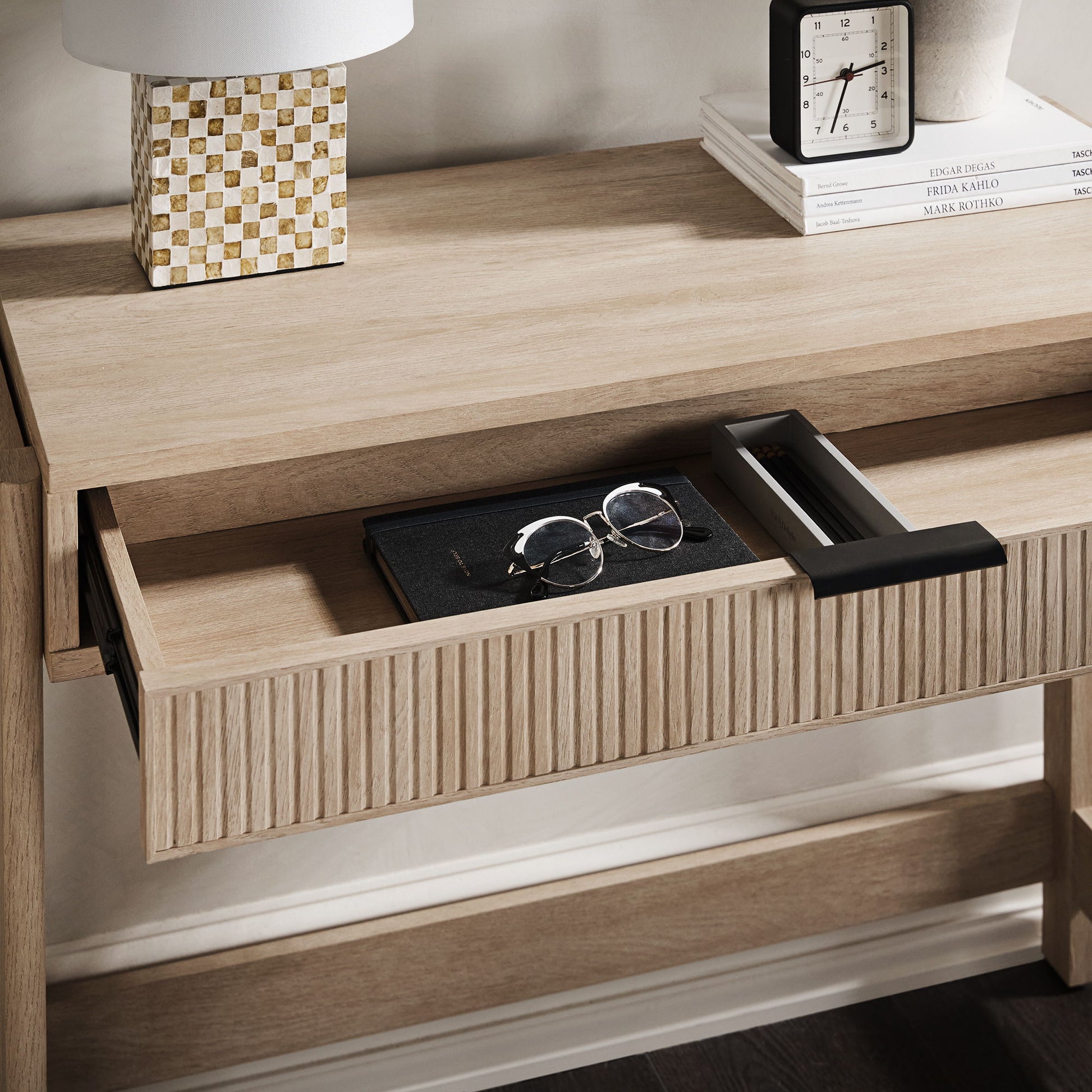 Transitional Reeded Writing Desk With Drawer - Oak