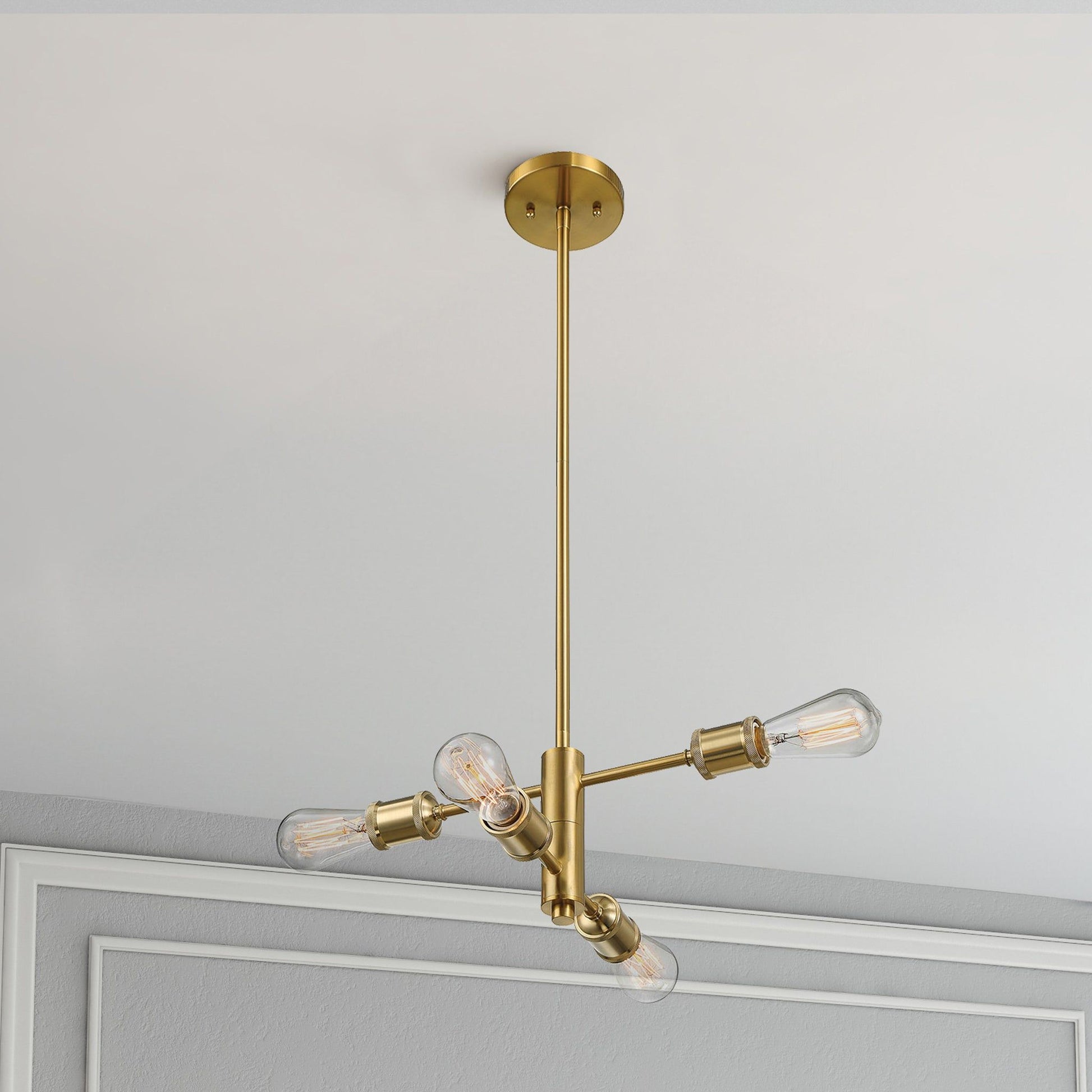 Trellis - 4 Lights Modern Gold Chandelier Vintage Pendant Fixture For Living Room - Clear / Gold