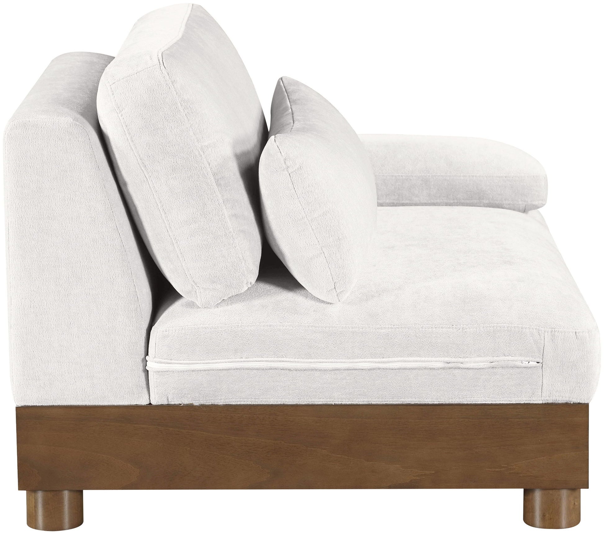 Turin - Chenille Fabric Upholstered Modular Right Arm Chair - Cream / Brown Walnut