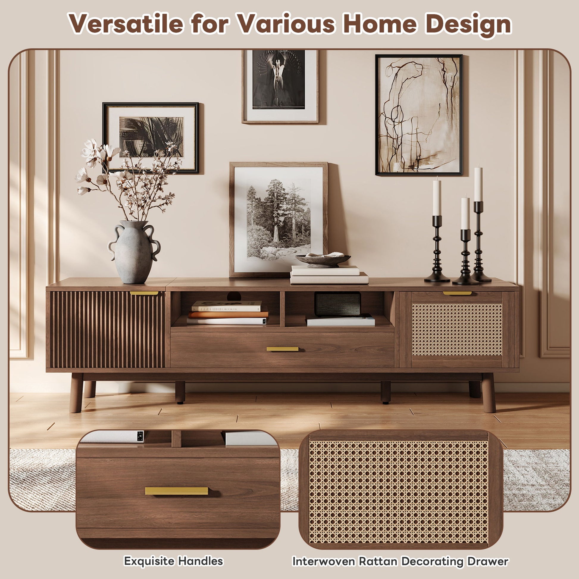 - Elegant Interwoven Rattan Door: Natural rattan detailing enhances visual appeal and adds artisanal charm to the design.