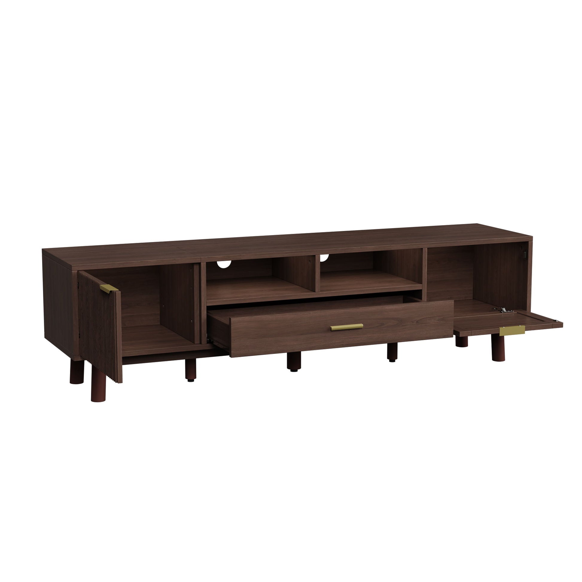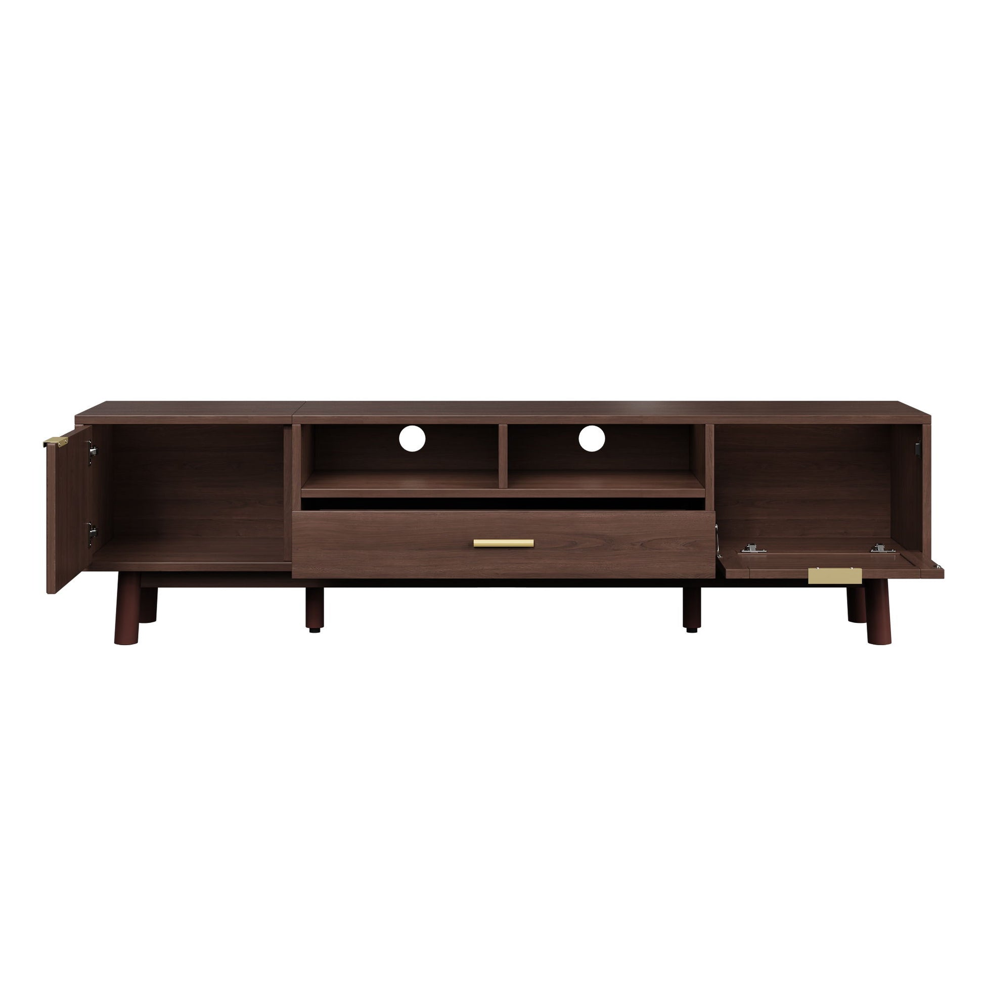 TV Stand For 75" TVs With Soft Closing Doors, Console With Accents And Drop Down Cabinet - Dark Brown