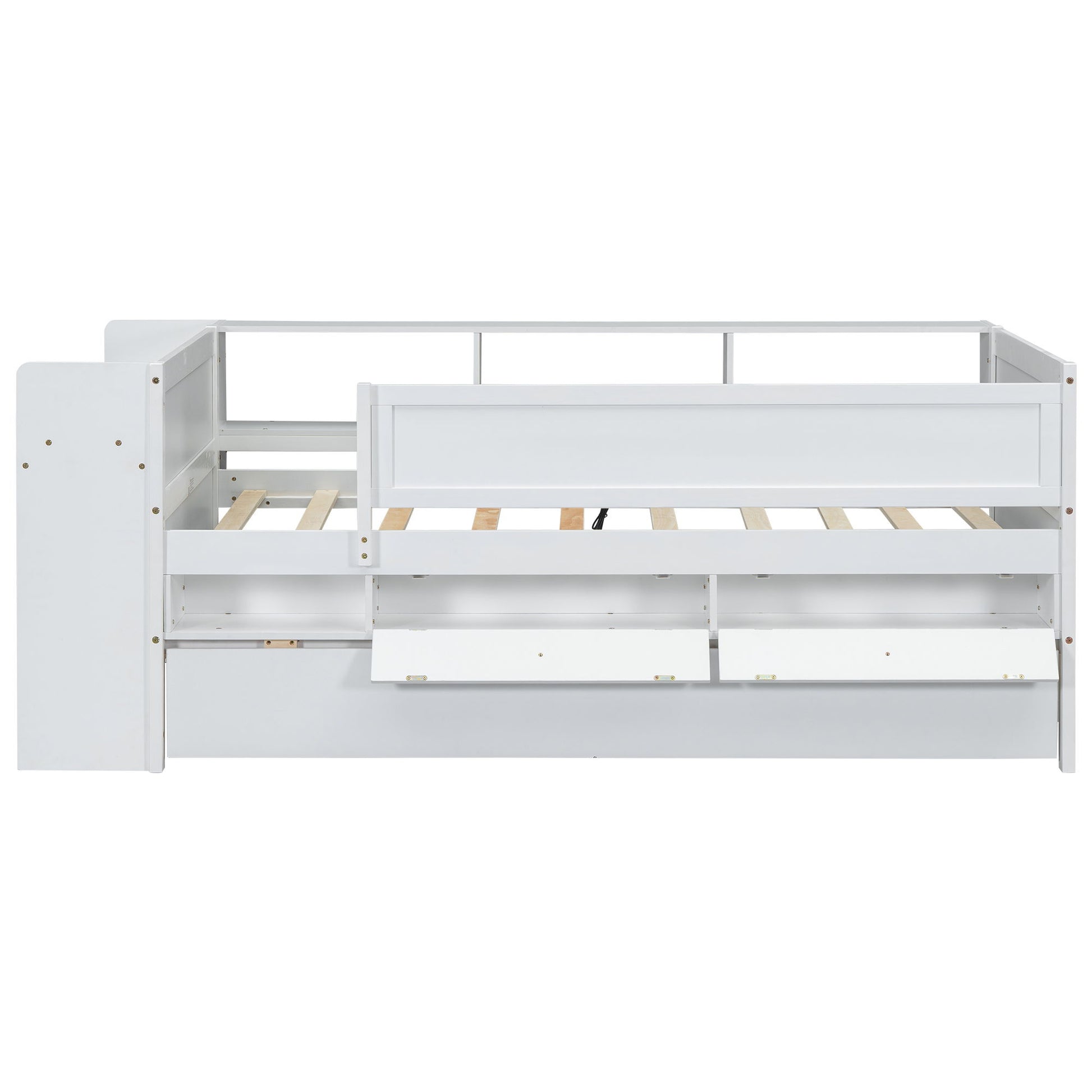 Twin Daybed With Drawers, Trundle, Headboard Storage, Study Desk, And USB Charging Station - White