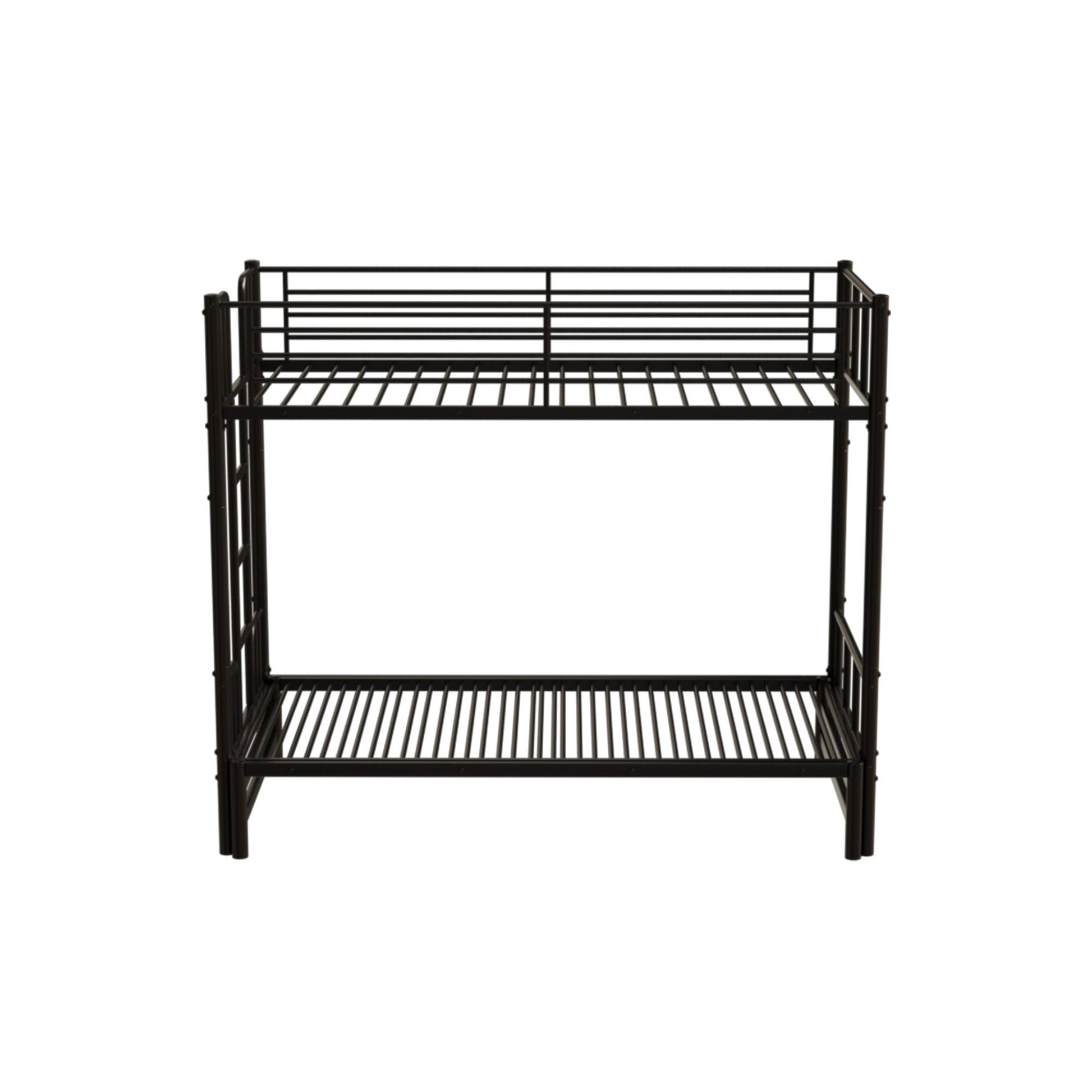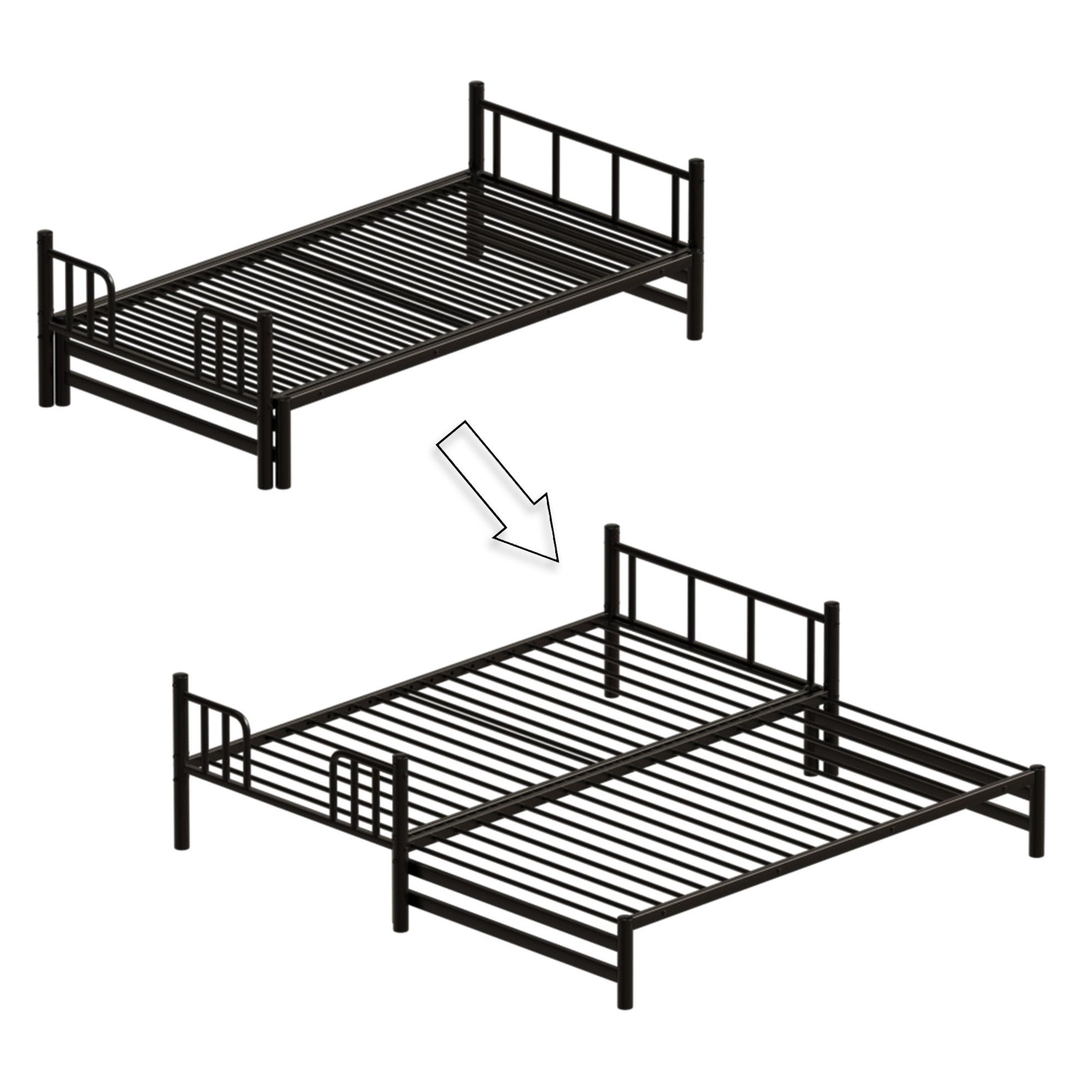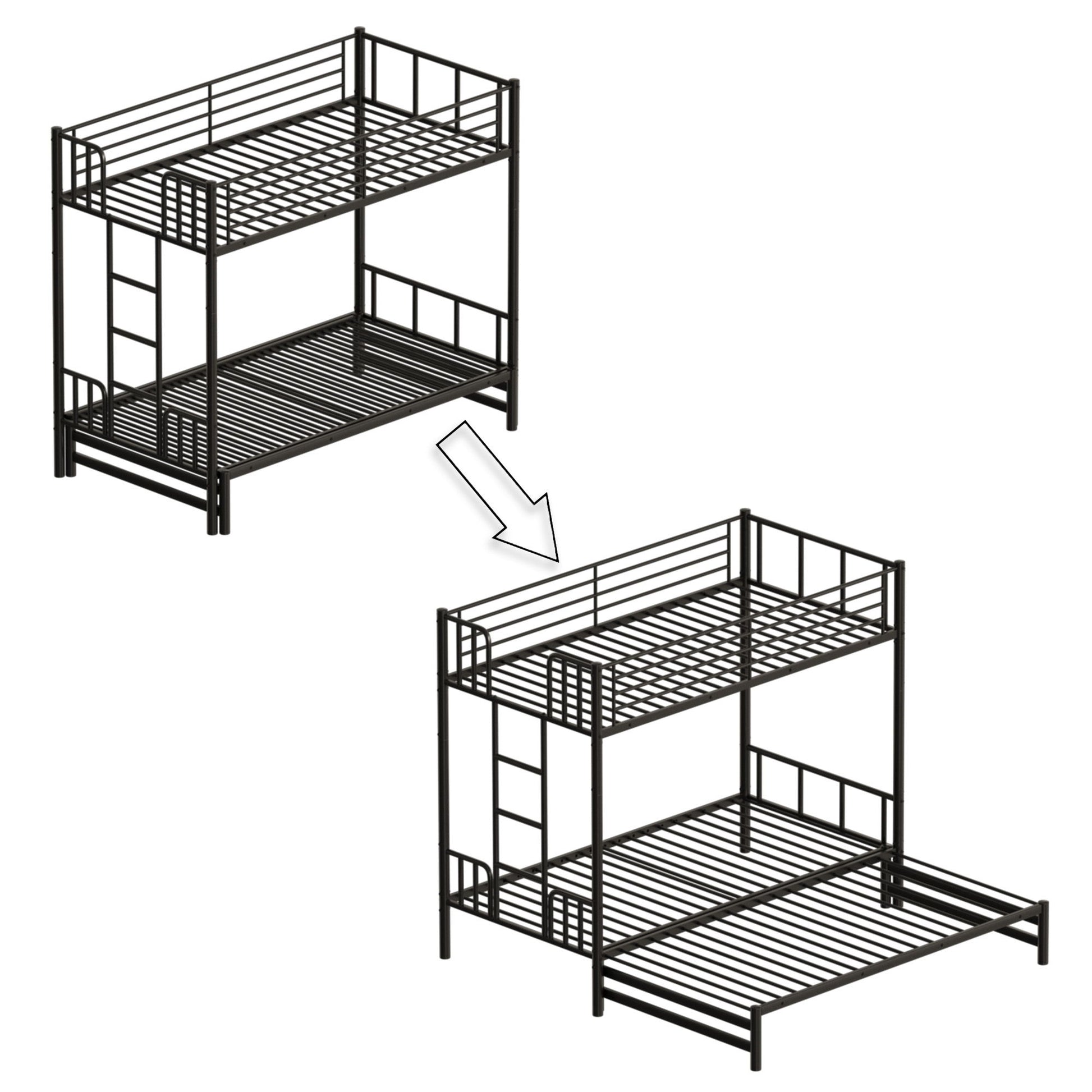 Twin Metal Pull Out Bunk Bed With Guardrail And Built In Ladder, Space Saving Convertible Frame For Bedroom - Black