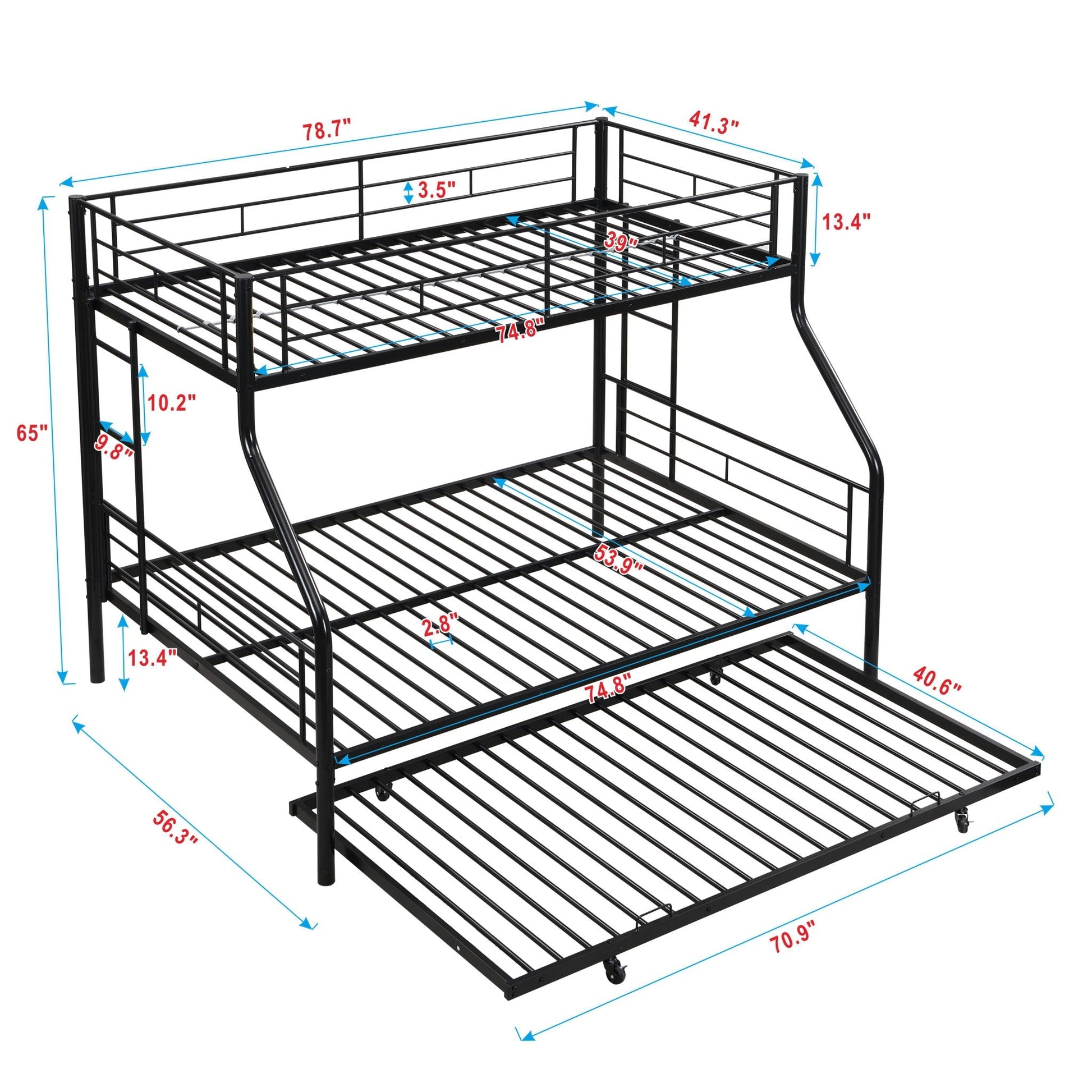 Twin Over Full Modern Metal Bunk Bed With Trundle - Black