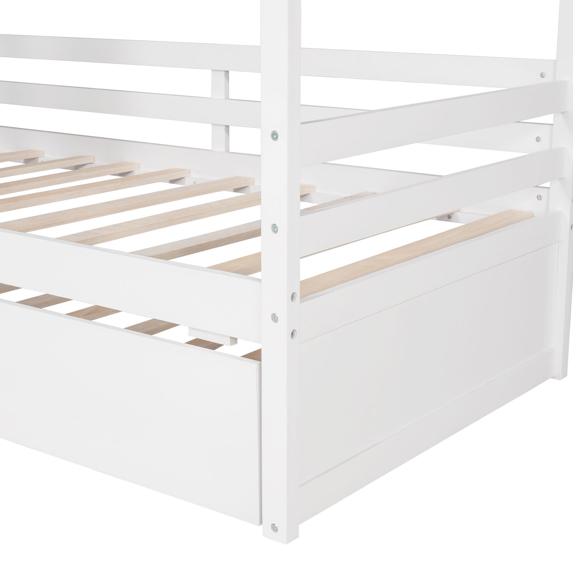 Twin Size Classic House Bed With Twin Size Trundle - White