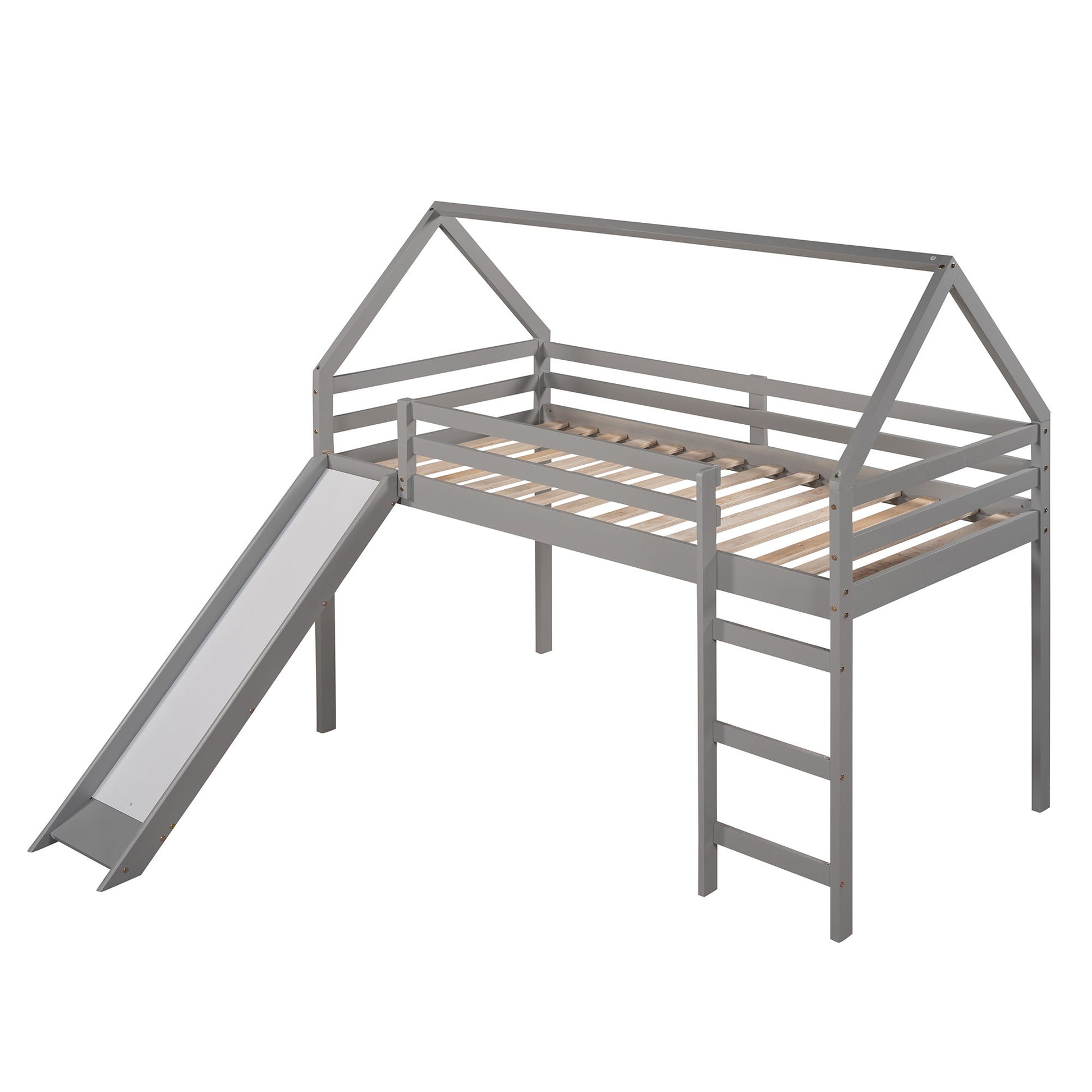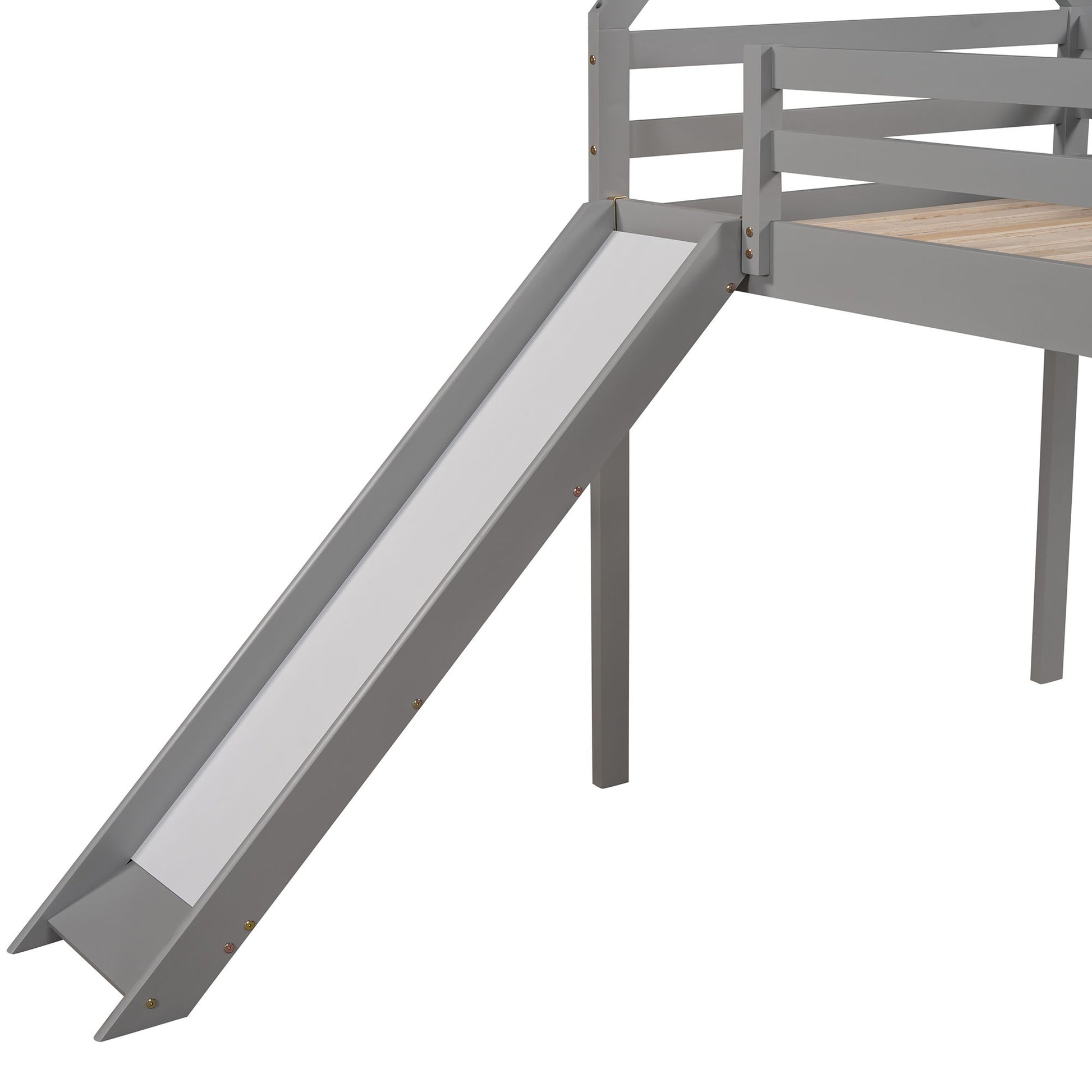 Twin Size House Loft Bed With Slide - Gray