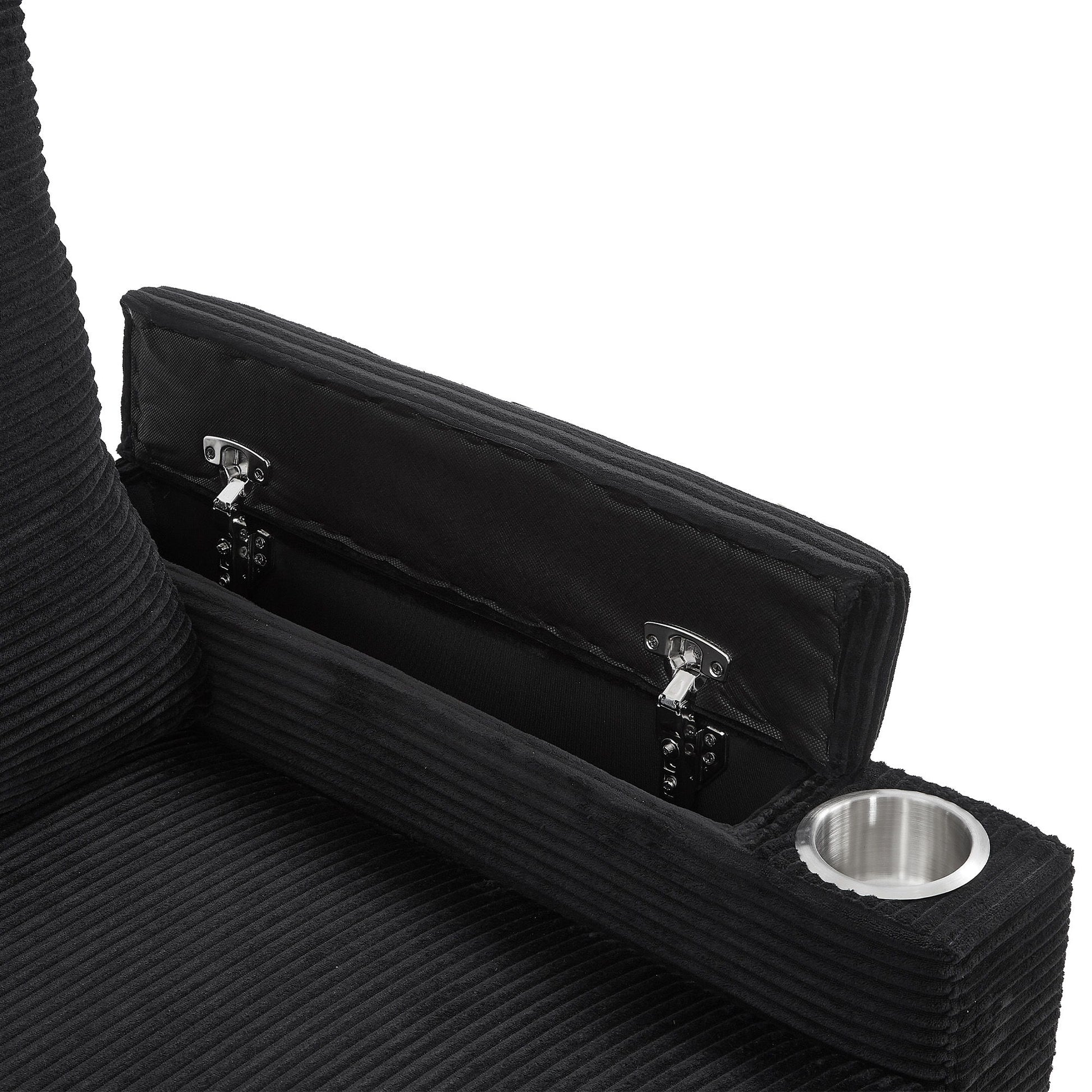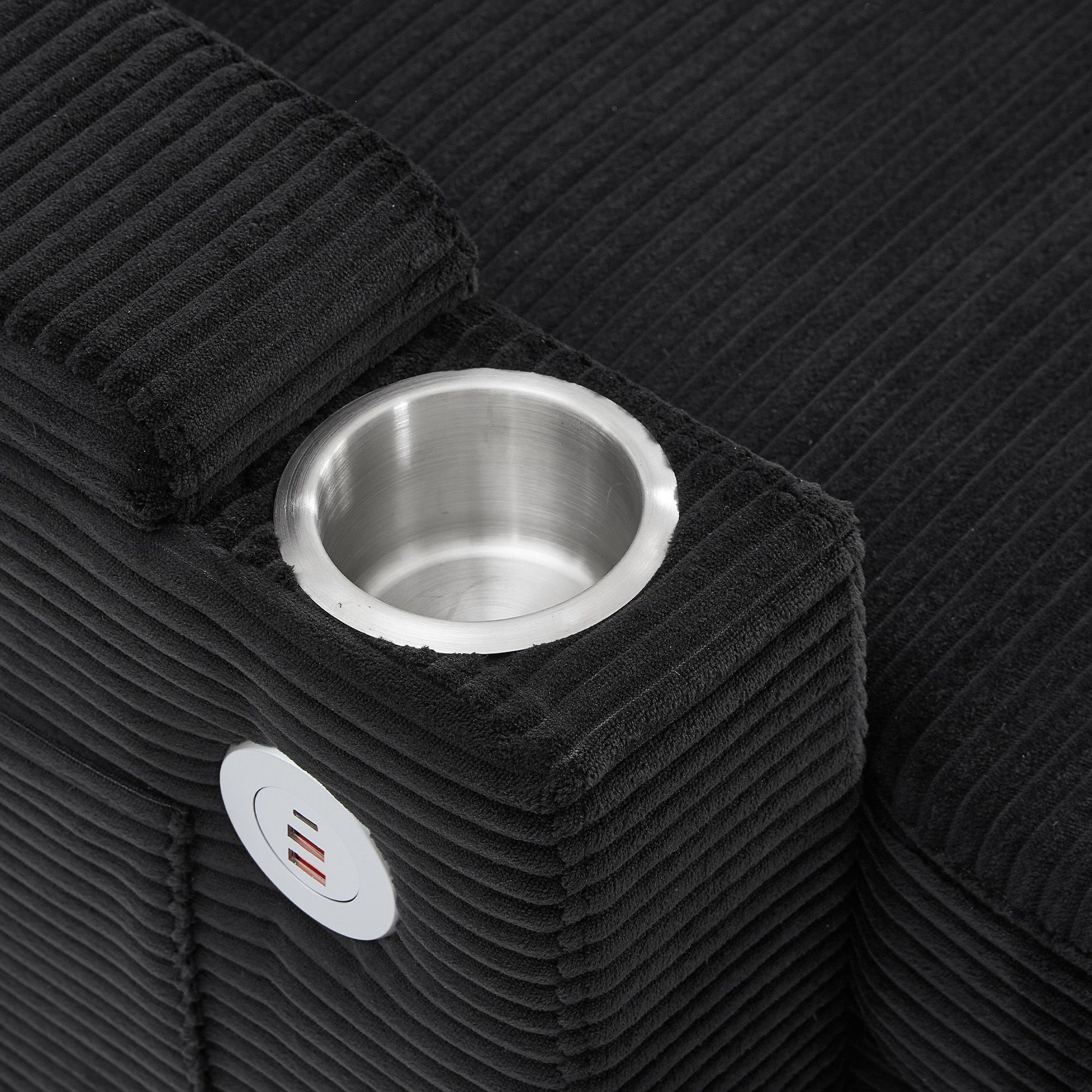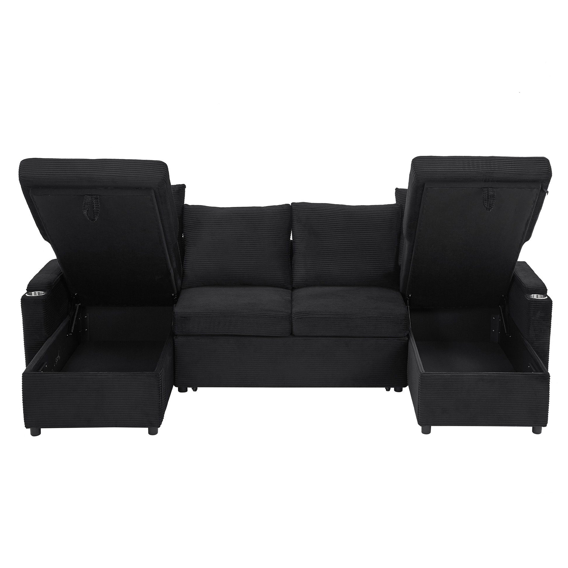 U Shaped Sectional Sofa Bed With Storage Chaise Lounges, Cup Holders, USB Ports, And Hidden Compartments - Black