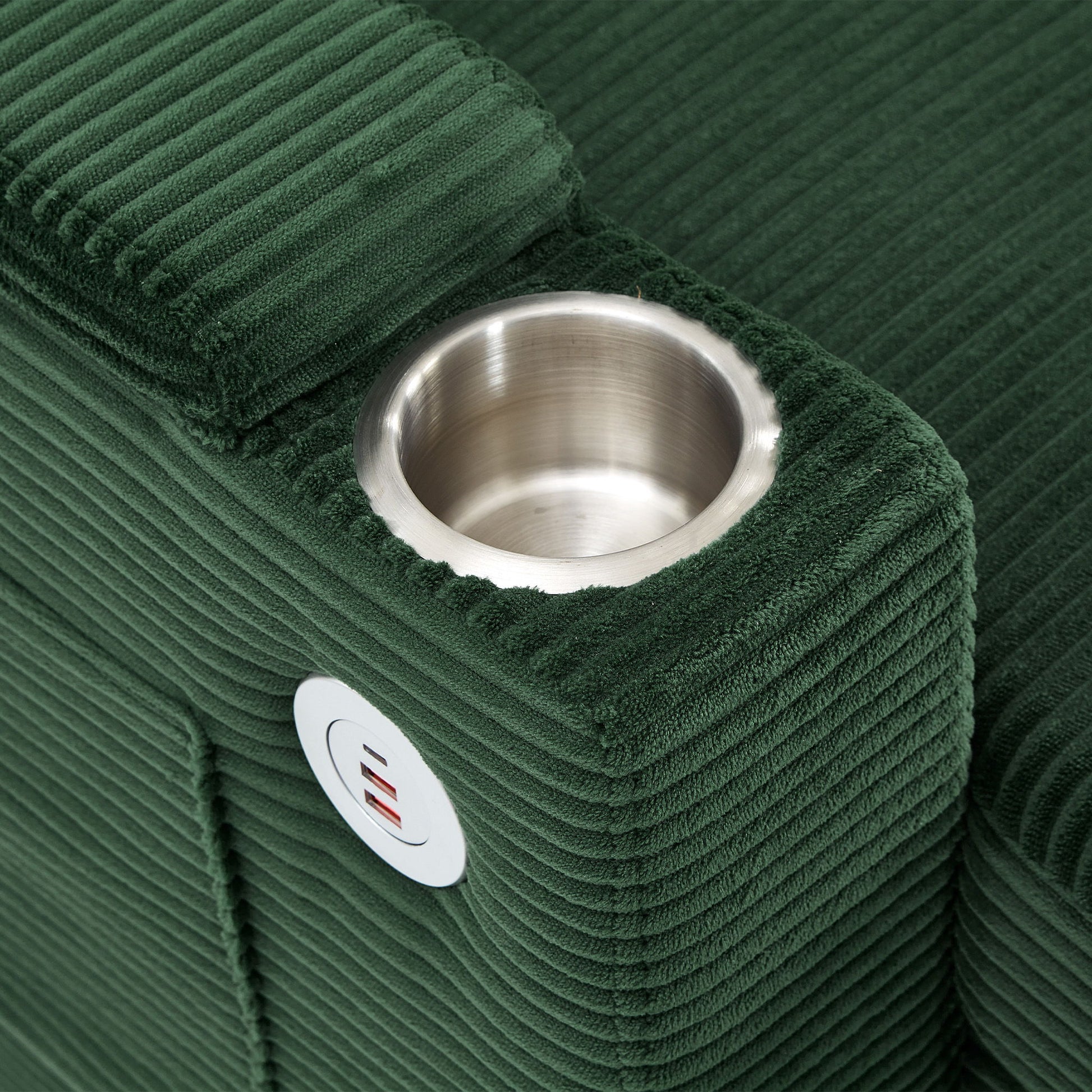 U Shaped Sectional Sofa Bed With Storage Chaise Lounges, Cup Holders, USB Ports, And Hidden Compartments - Green
