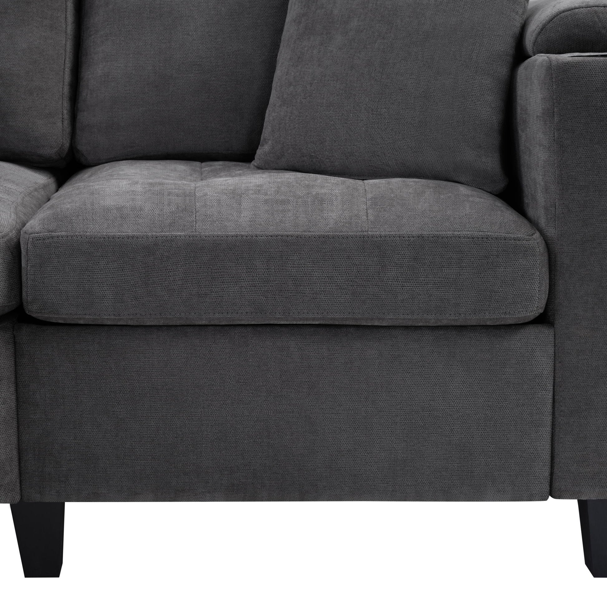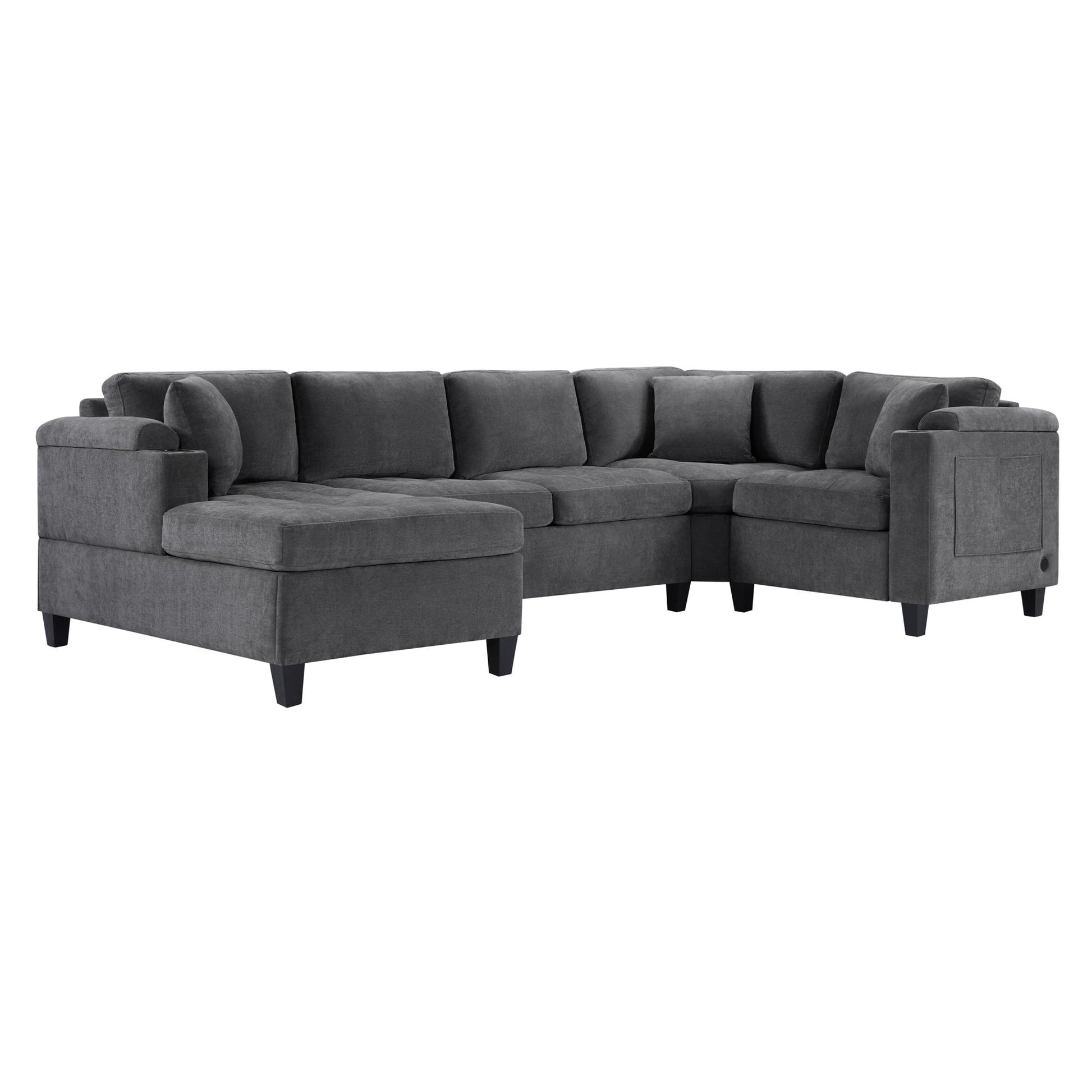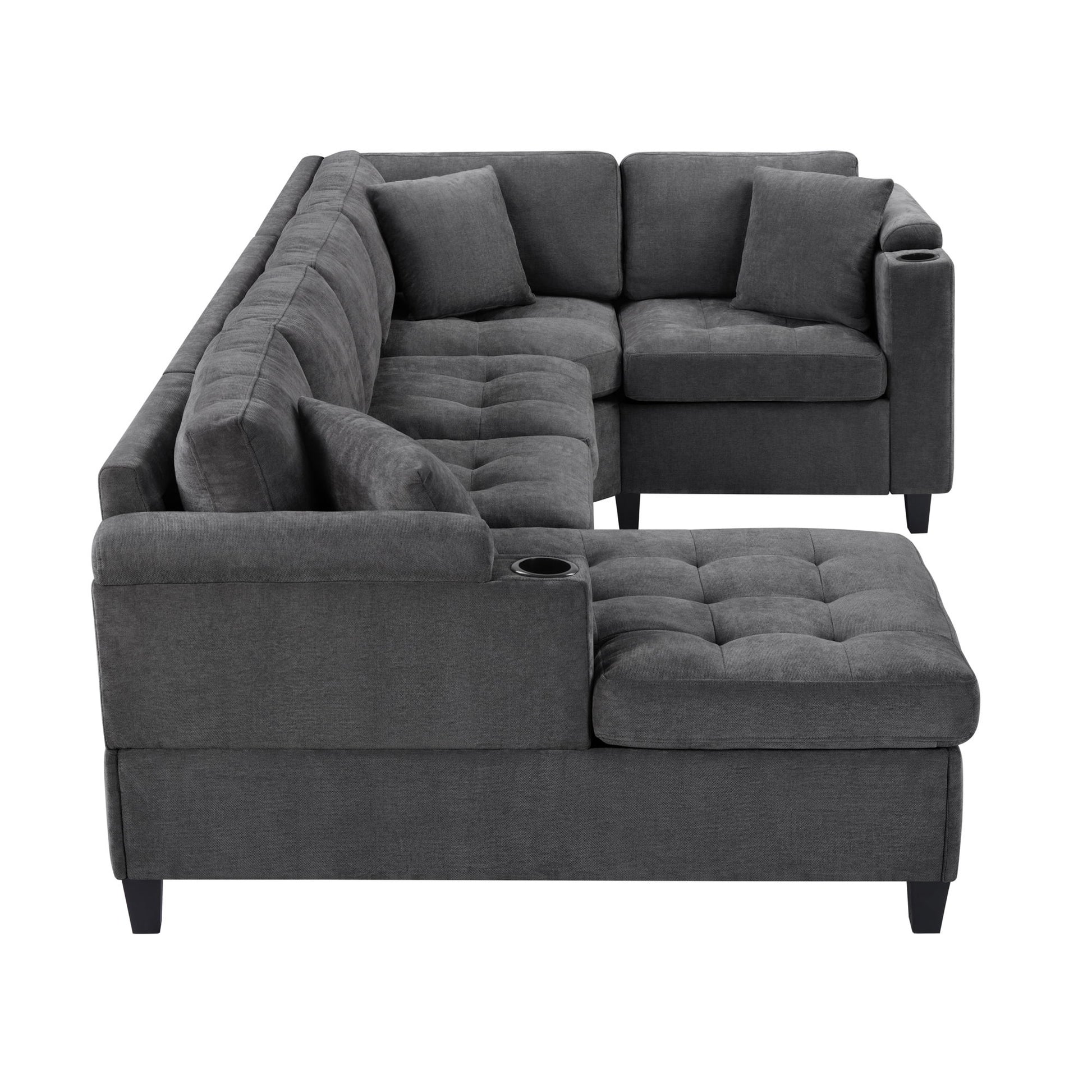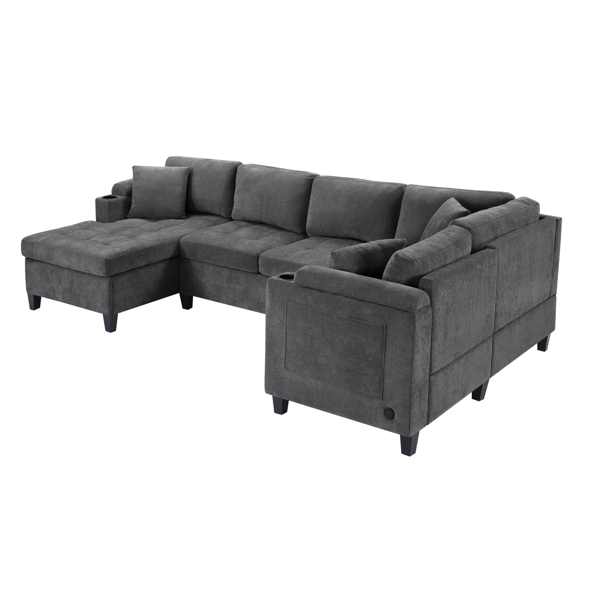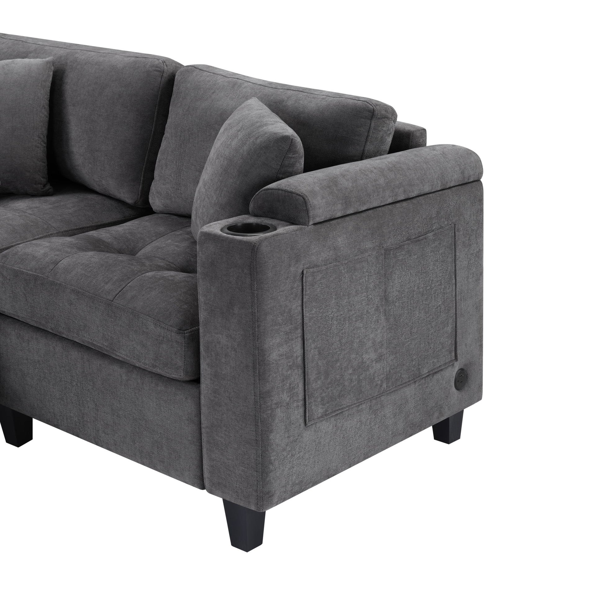 U Shaped Sectional Sofa, Corner Living Room Couch With Built In Cup Holders, Storage, USB Ports - Grey
