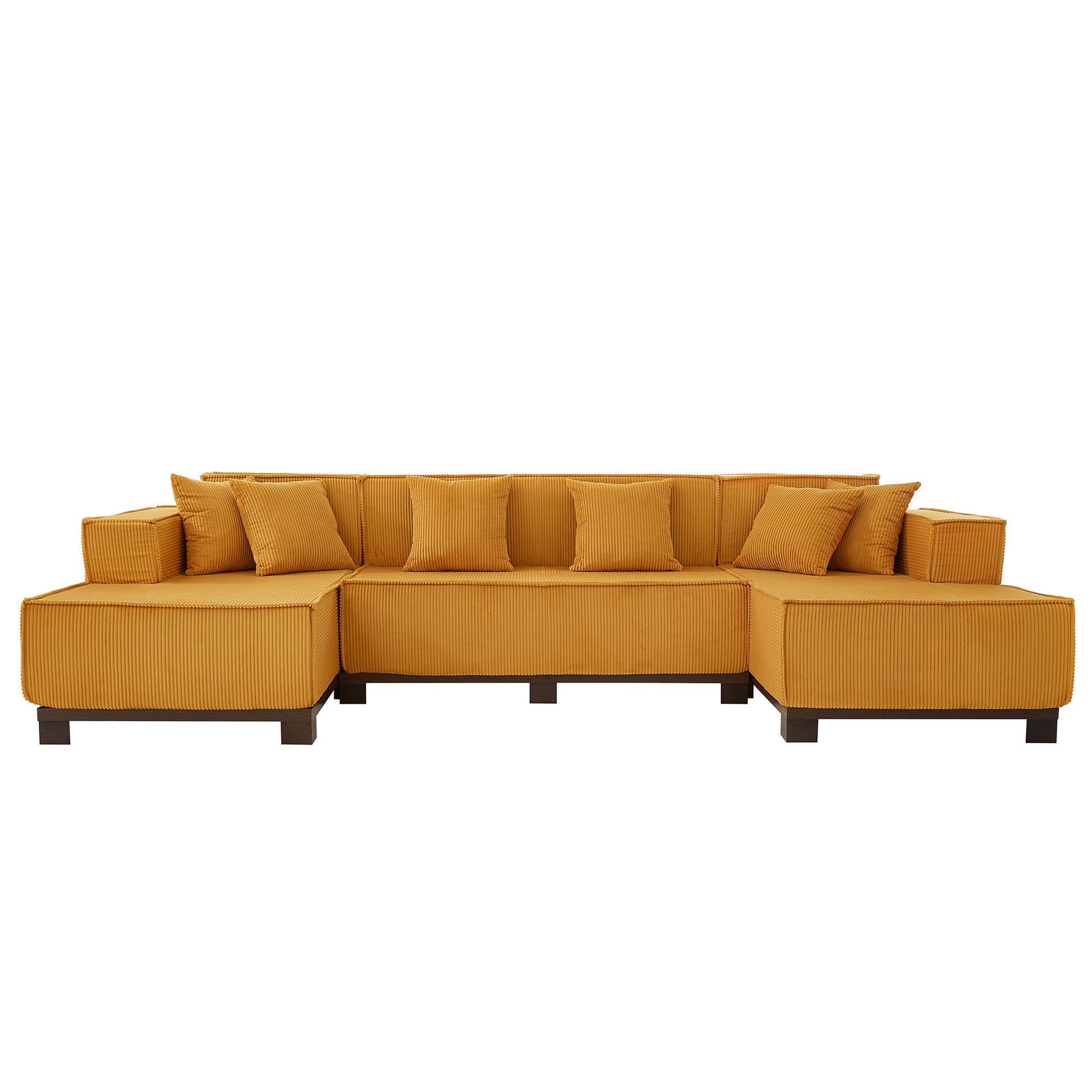 U-Shaped Sectional Sofa With RGB LED Light Strip And 6 Pillows - Orange