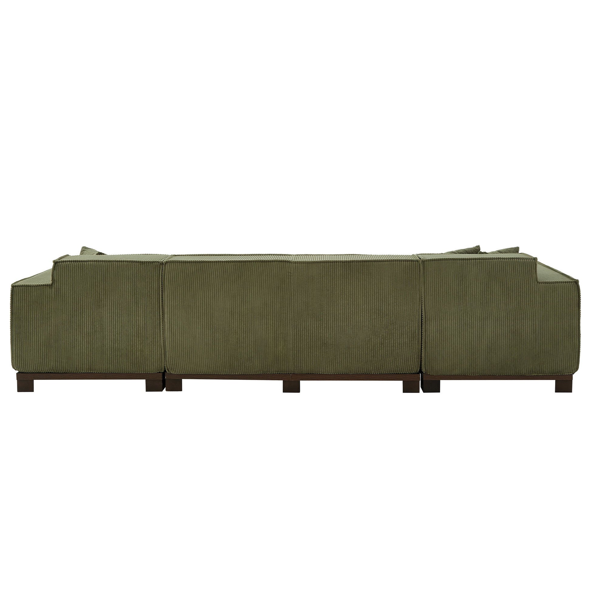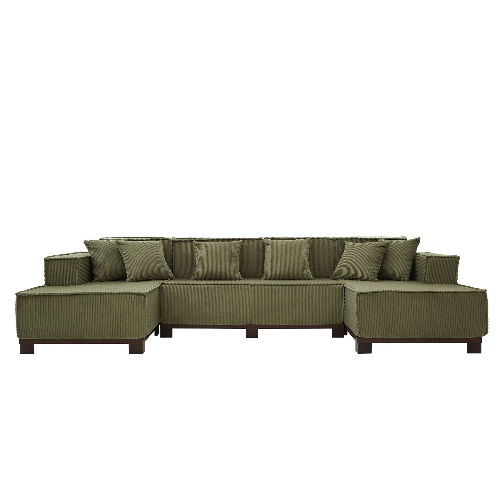 U-Shaped Sectional Sofa With RGB LED Light Strip And 6 Pillows - Green