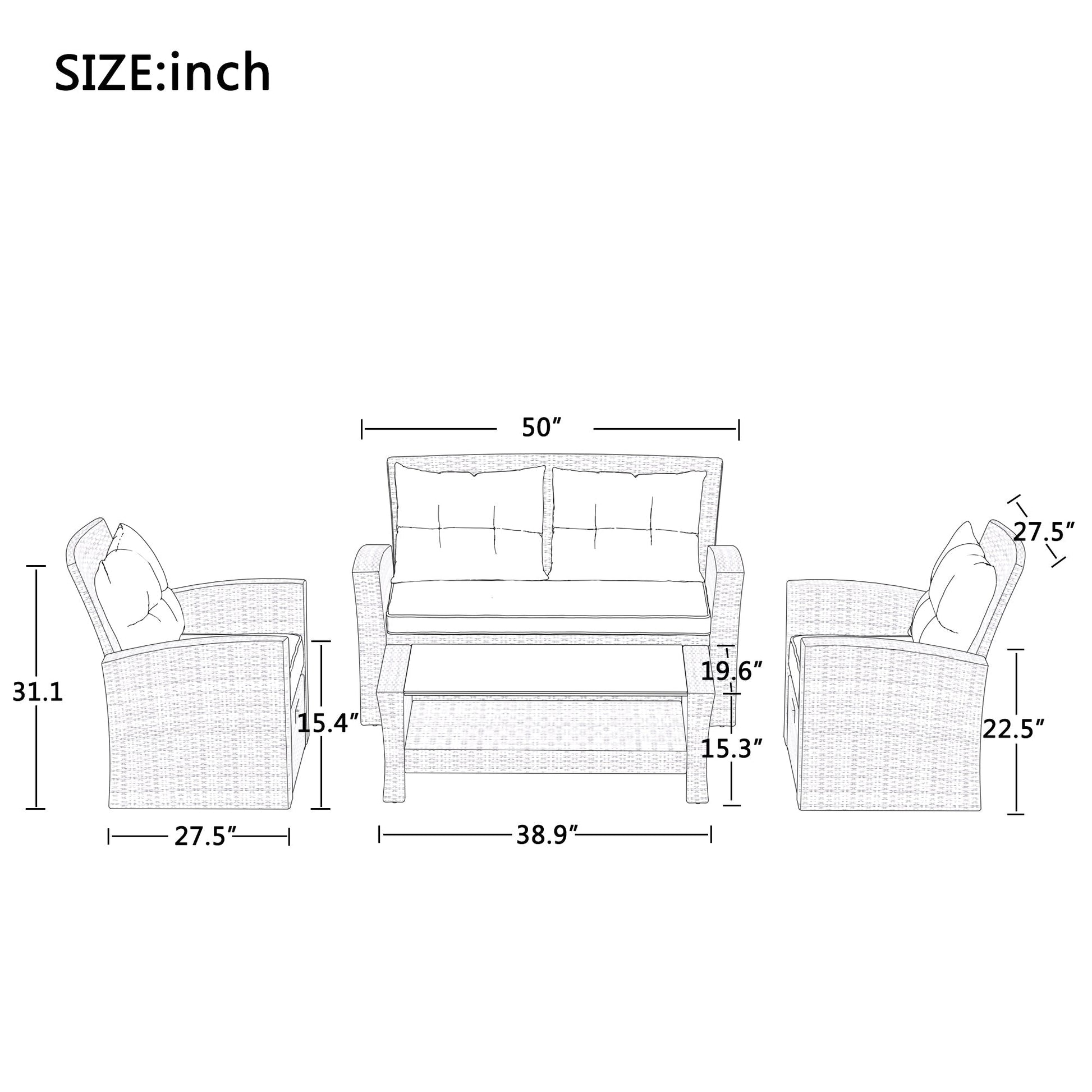 U-Style 4 Piece Outdoor Patio Furniture Set with Ottoman and Cushions