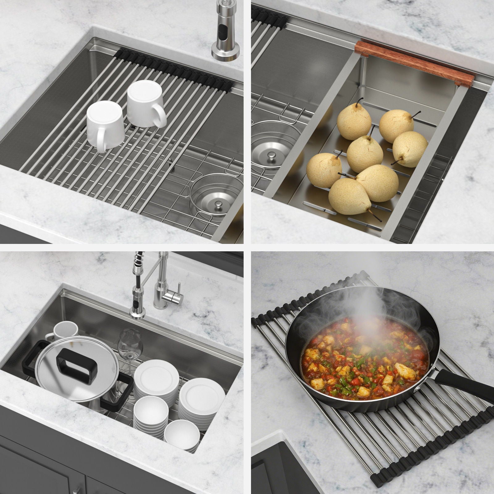 Undermount Workstation Kitchen Sink Stainless Steel Single Bowl
