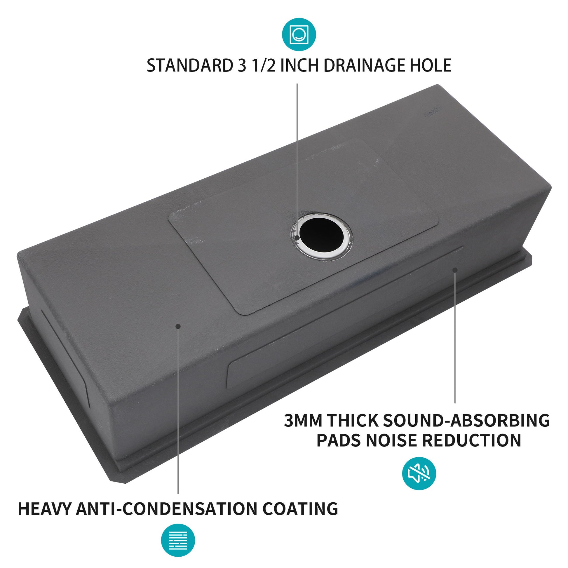 Undermount Workstation Kitchen Sink Stainless Steel Single Bowl - Black