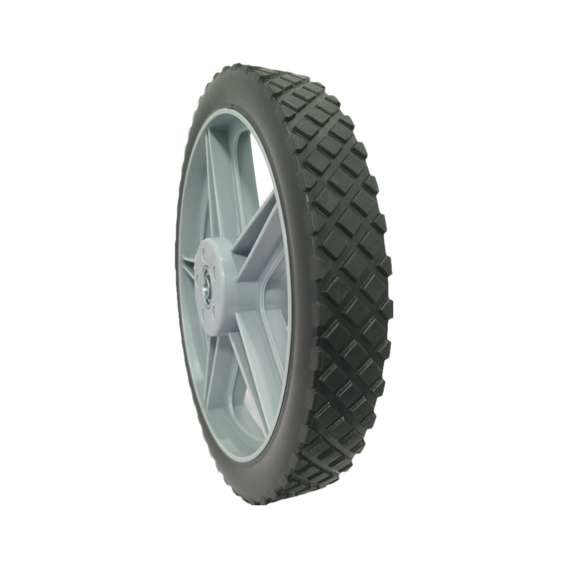 Universal 12" Spoked Plastic Wheel And Tire For Lawn Mowers & Trolley Carts, 10 Pack - Black