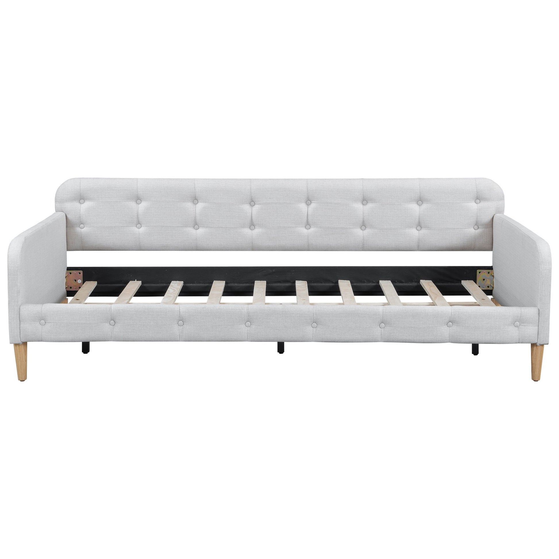 - Modern Design: Elegant linen upholstery with button-tufted backrest and recessed square arms for a contemporary look