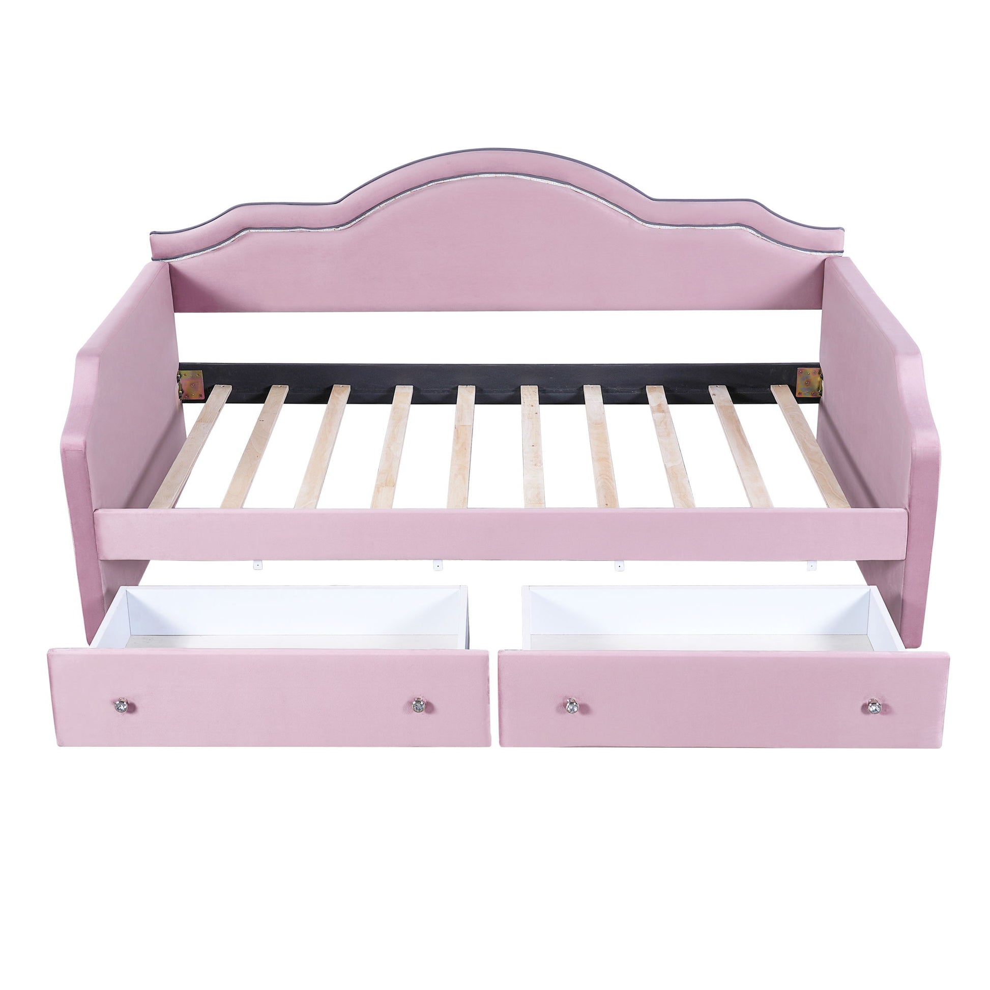 Twin Size Upholstered Daybed With LED Lights And 2 Drawers - Pink