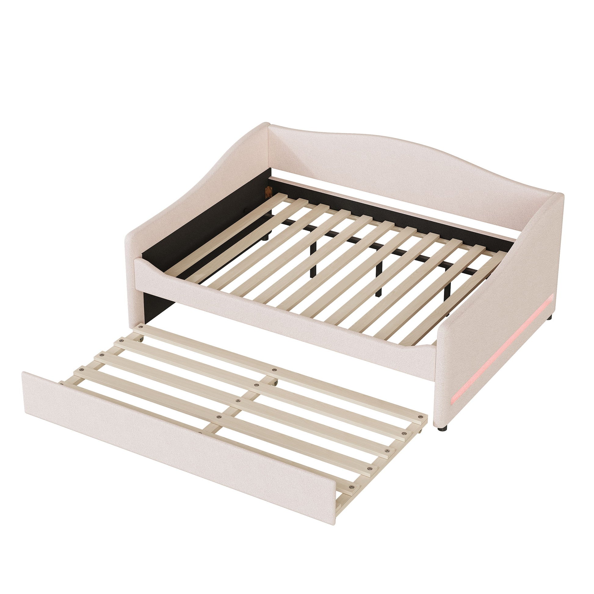 Full Size Upholstered Daybed With Light And Trundle - Beige