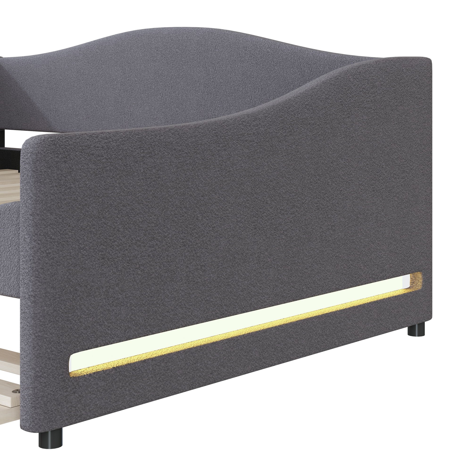 Full Size Upholstered Daybed With Light And Trundle - Gray