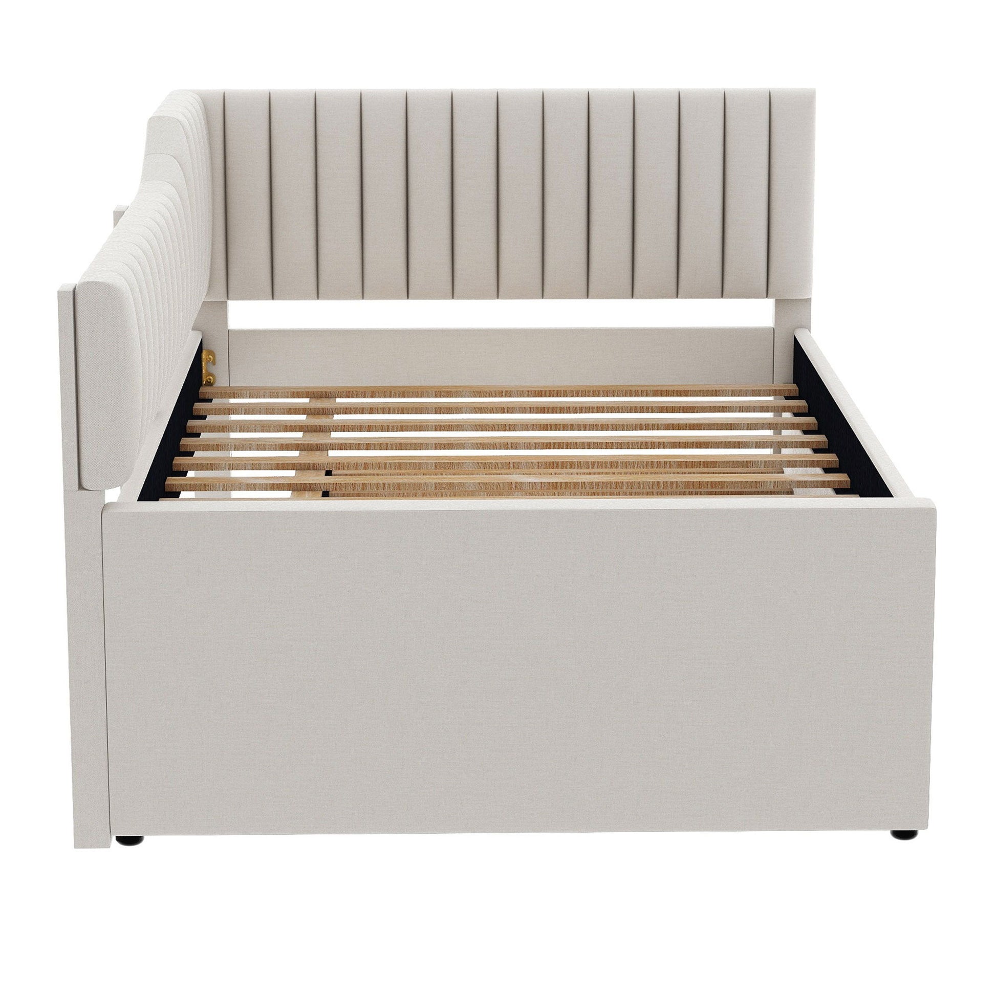 Full Size Upholstered Daybed With Trundle And 3 Drawers - Beige