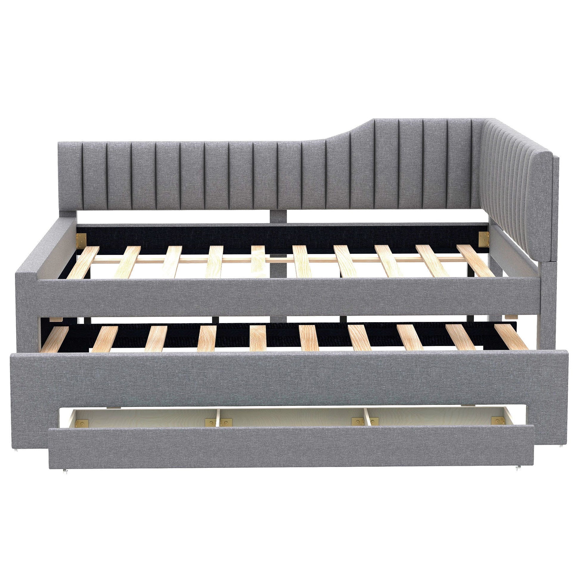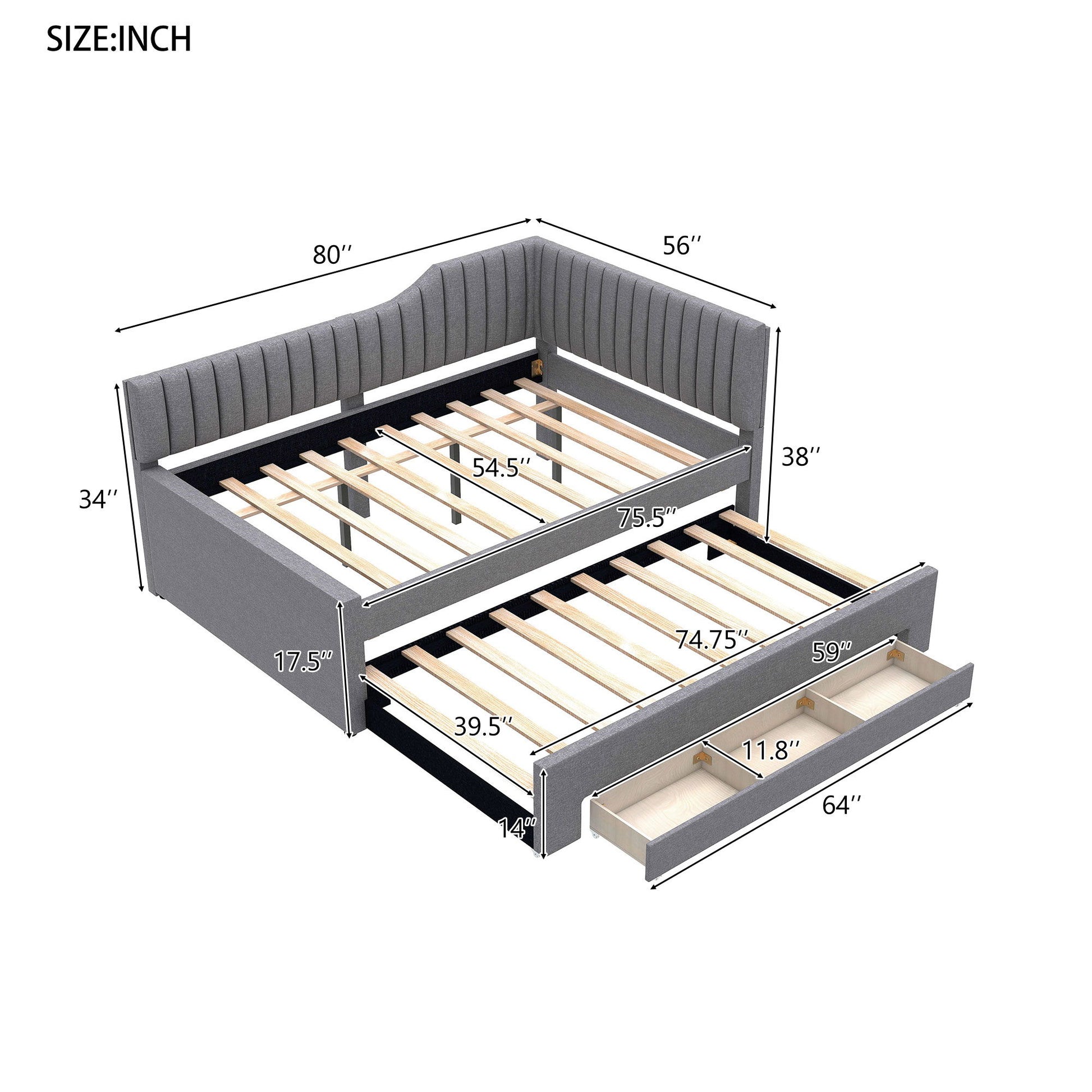 Full Size Upholstered Daybed With Trundle And 3 Drawers - Gray