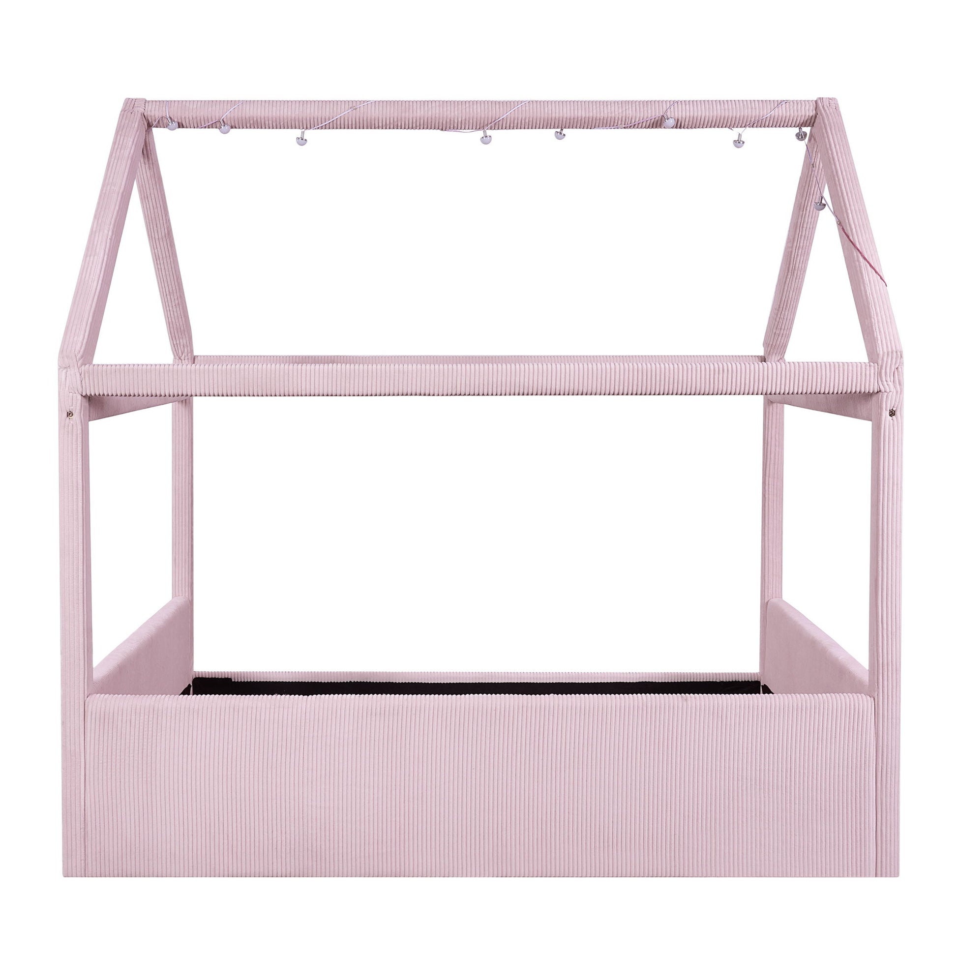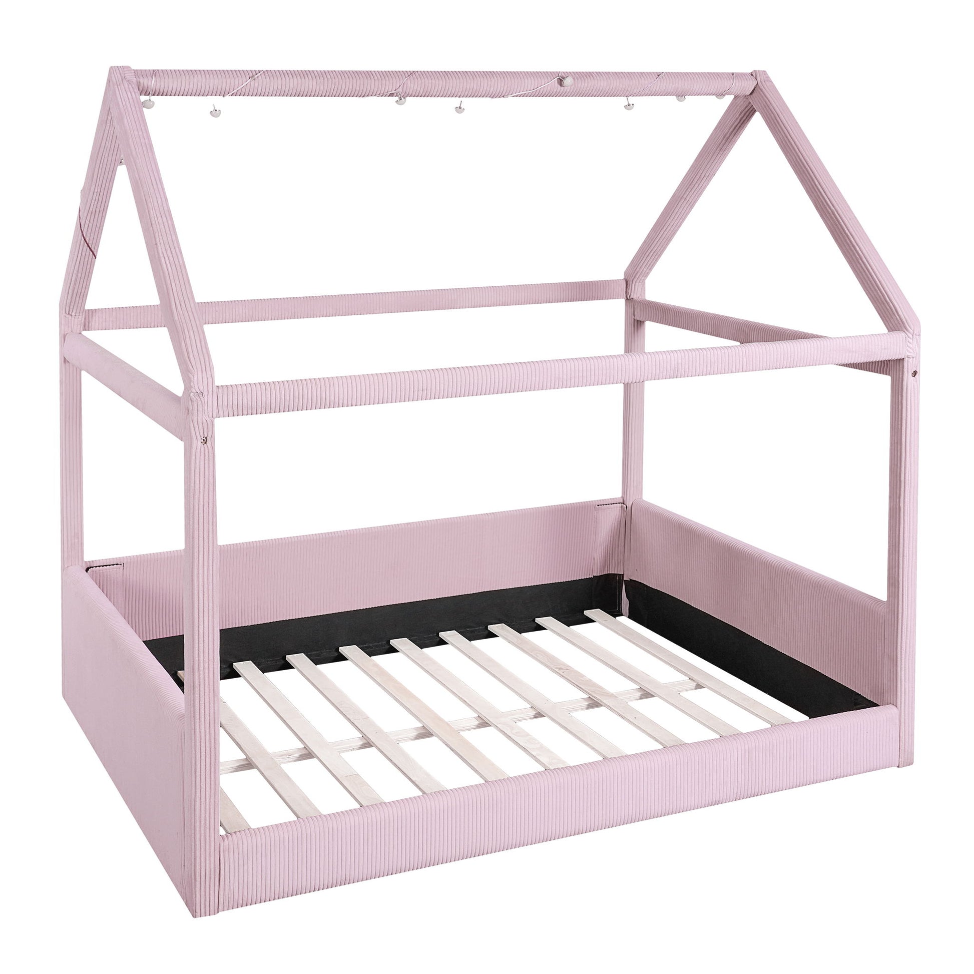 Full Size Upholstered House Style Daybed With LED Light Strips - Pink